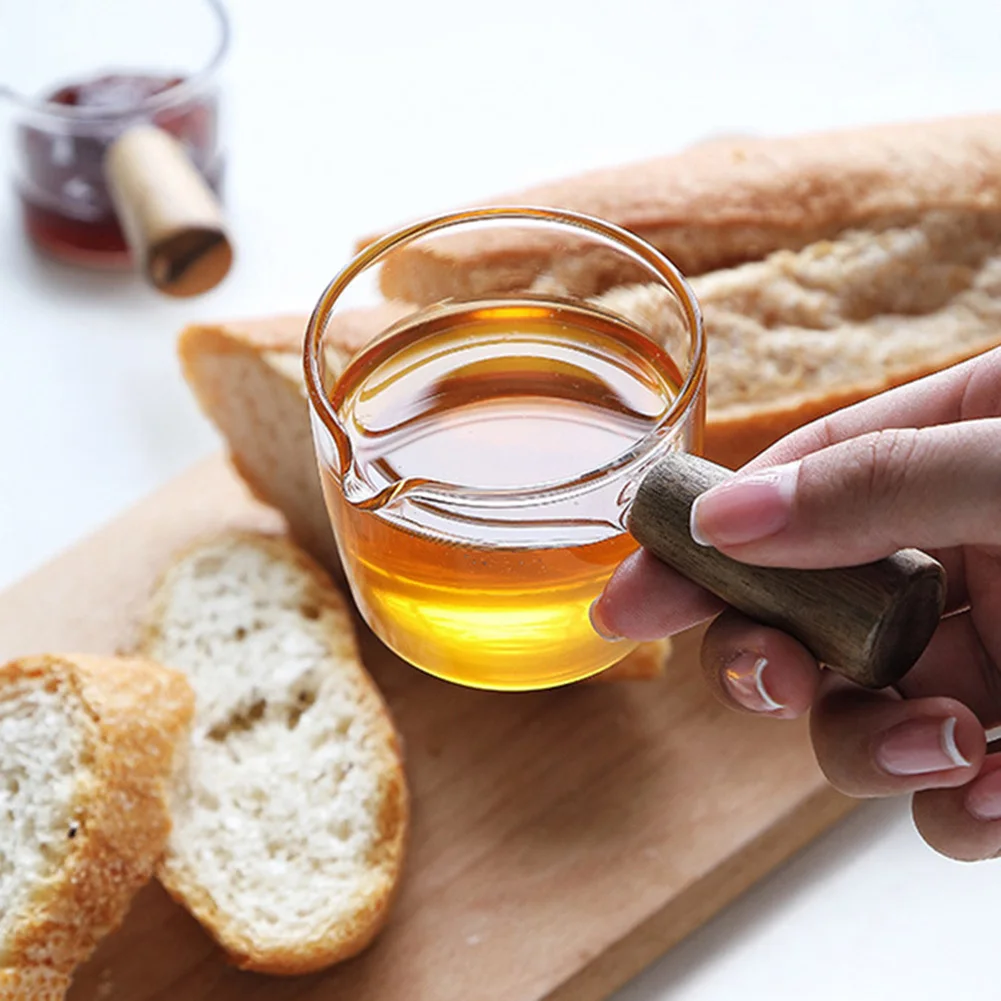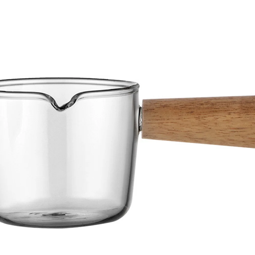 Отзывы о Kitchen Glass Milk Cup Creamer Jug Wood Handle Heat Resistant Syrup Sauce Dispenser Espresso Container Home Gadgets | Дом и сад