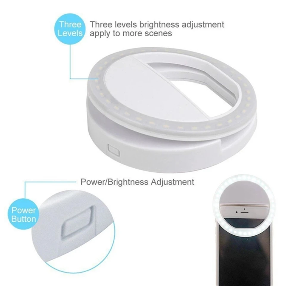 Roreta Новый светодиодный светильник для селфи с кольцом портативный светодиодный светильник для селфи S светящееся кольцо с зажимом для смартфона