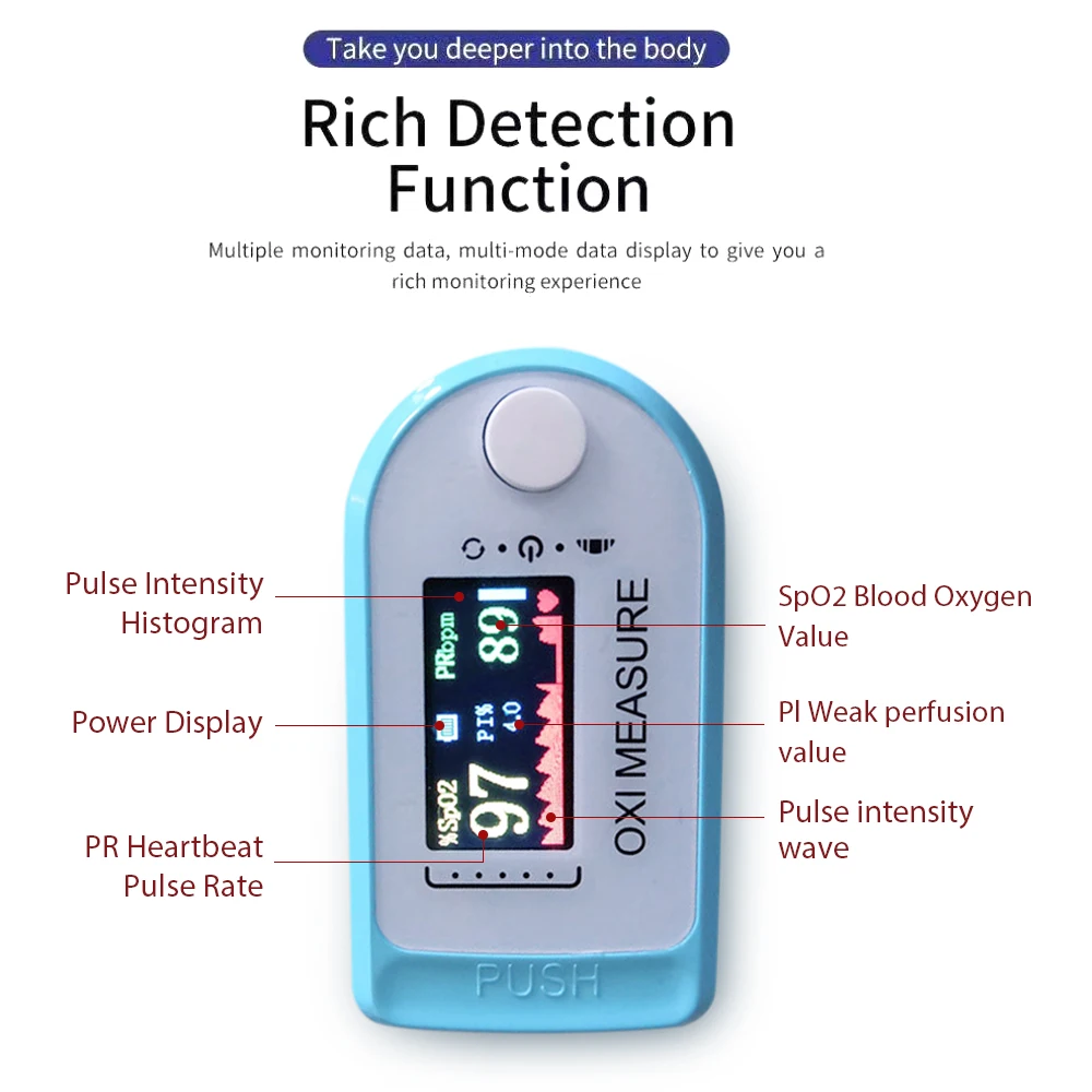 Использование r-friendly: интегрировано с датчиком кислорода в крови и модулем обработки дисплея, продукт прост в использовании, низкое потребление pow-er, малый размер, вес и легкий для переноски светильник.