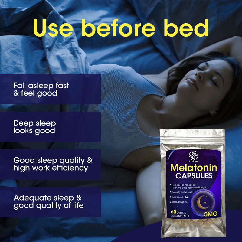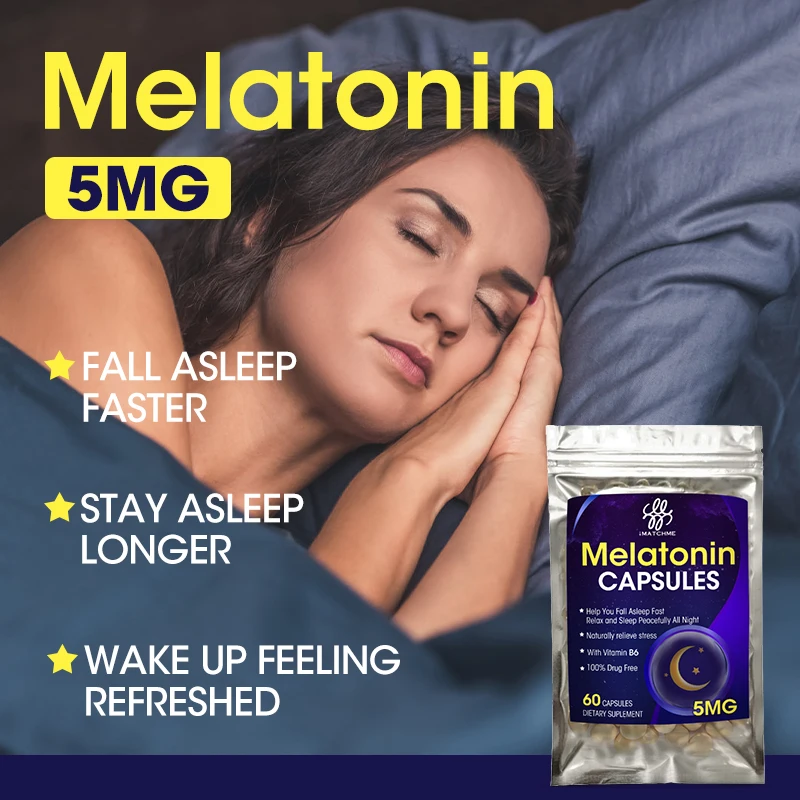 IMATCHME 5 мг Мелатонина капсулы витамин B6 Мелатонина Таблетки помогают глубокому сну сохранить бессонницу улучшить сон для взрослых здравоохранения