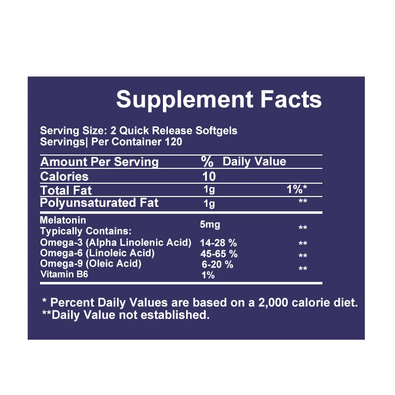 Сырье для производства: мелатонин, витамин B6, растительное масло, пищевое оболочка капсулы, омега-3 полиненасыщенные кислоты, омега-6 полиненасыщенные кислоты, омега-9 полиненасыщенные кислоты, глицерин и т. д.