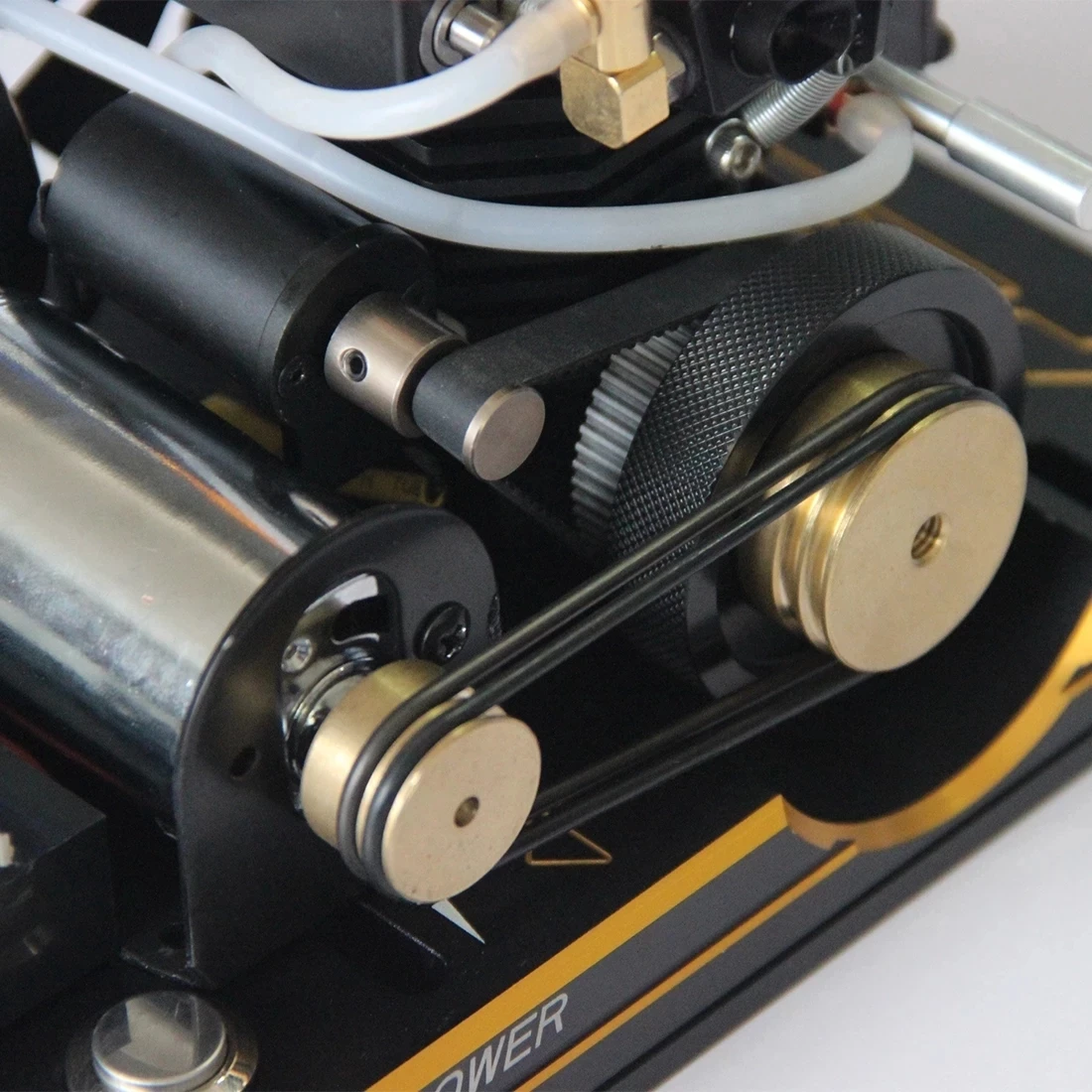 .This product is a modified self-made generator model, using TOYAN FS-100A single-cylinder four-stroke methanol engine as the power of the generator, with a metal base, modified pure copper flywheel, connected to a small motor, and a digital display for mobile phone charging. The whole is beautiful and elegant, with a one-key electric start switch, which is more convenient to place and operate.