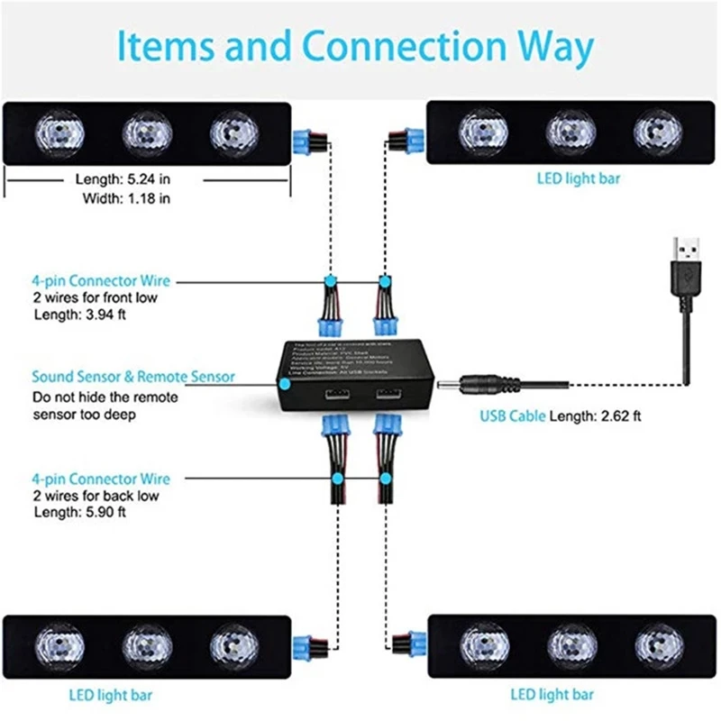 4 шт. светодиодный автомобильный интерьерный атмосферный светильник для ног окружающий светильник s с USB светильник er подсветка светильник дистанционное управление RGB Авто декоративная лампа