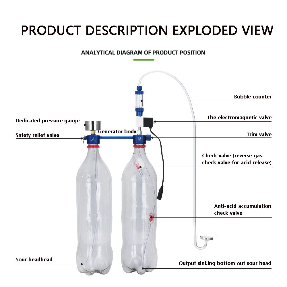 6. Оснащен предохранительным клапаном, давление больше 4 кг, и давление автоматически уменьшается, и давление бутылка для газированных напитков составляет 8 кг, что является безопасным и безопасным.
