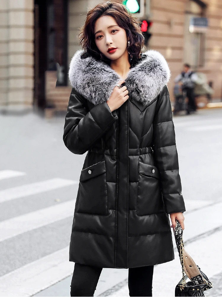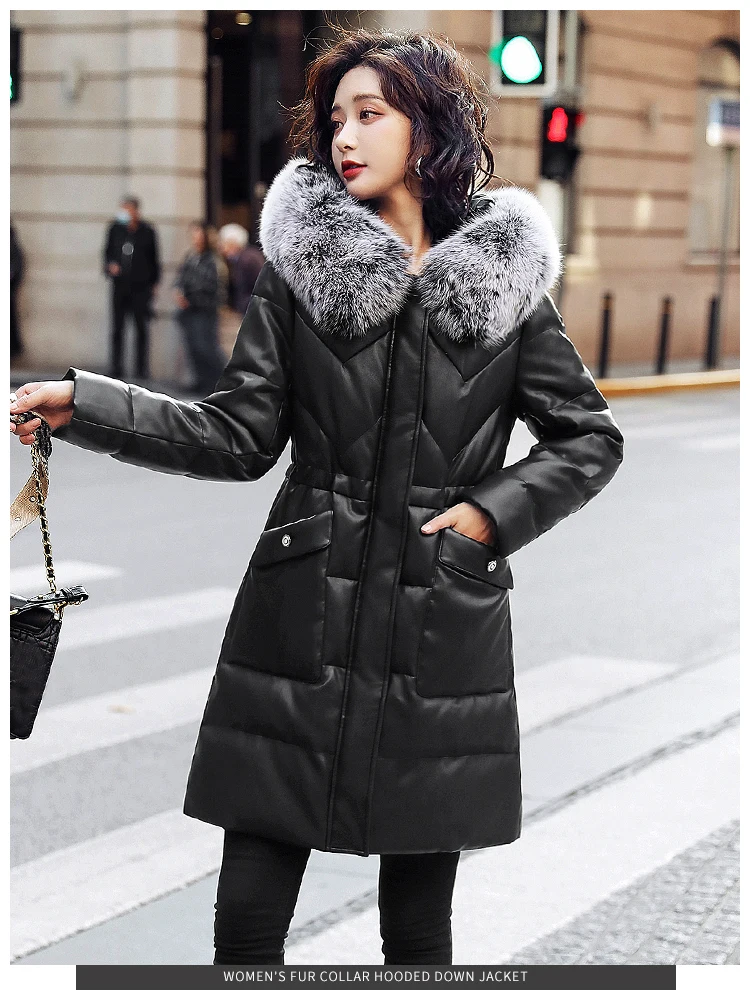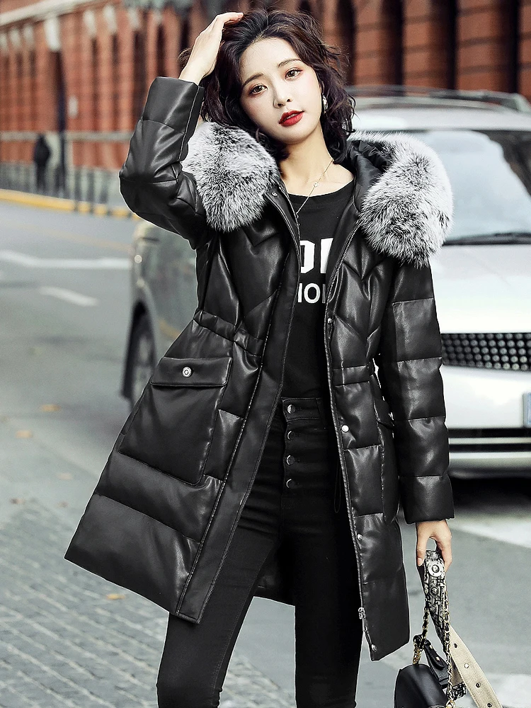 Отзывы о Зимняя Толстая кожаная куртка для женщин новинка черное тонкое теплое пальто