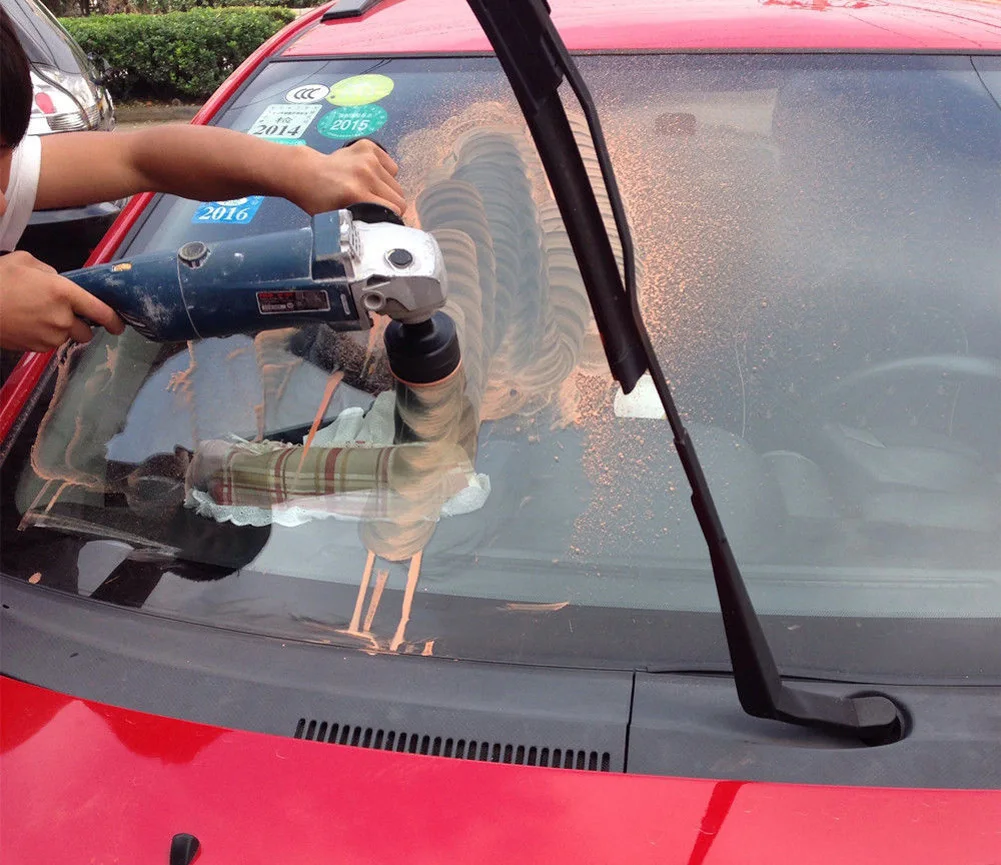 6. Поместите шлифовальный круг на рабочую область, используйте фетровое колесо небольшого размера, если scrach находится рядом с углом окна, держите колесо движется вверх, вниз и круговым движением.