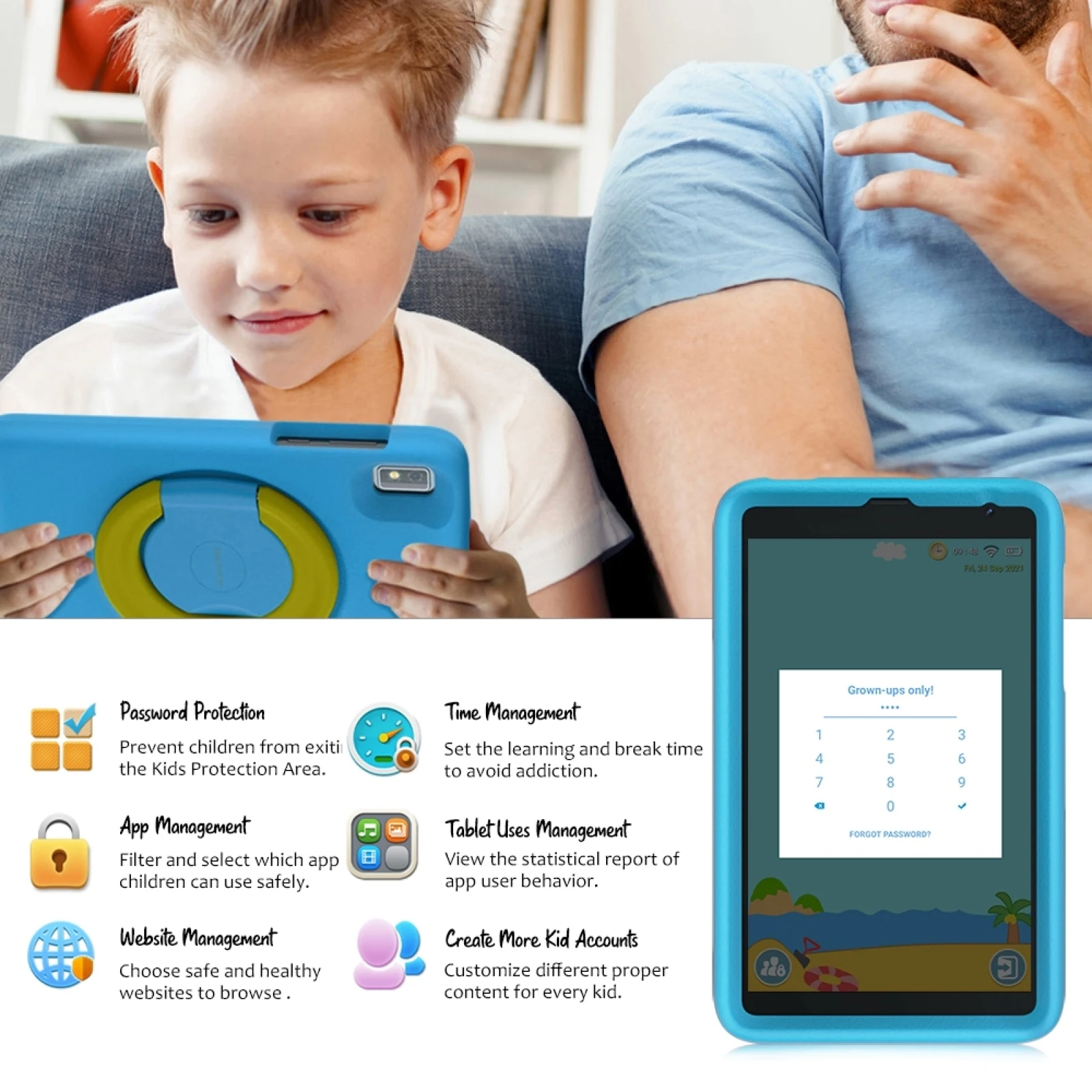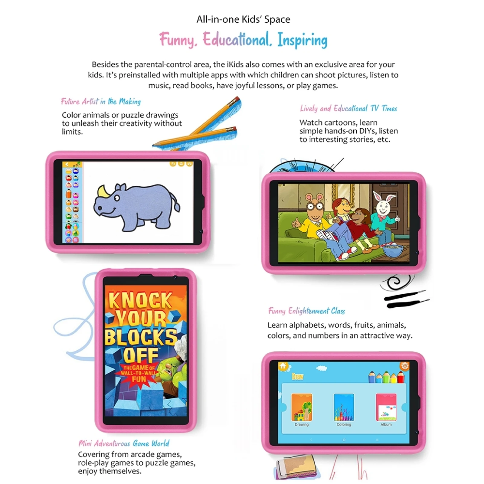 8. Функции детей: Защита паролем, детское пространство, настраиваемое приложение iKids, управление временем, режим защиты глаз, класс забавного просветления и т. д.