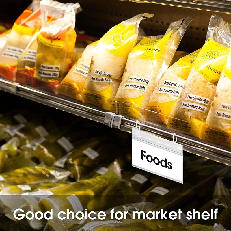 Уникальный дизайн замка: пластиковый зажим для этикеток имеет плотное надежное крепление для защелки, которое надежно висит на полке, не беспокоясь о том, что зажим выпадает.
