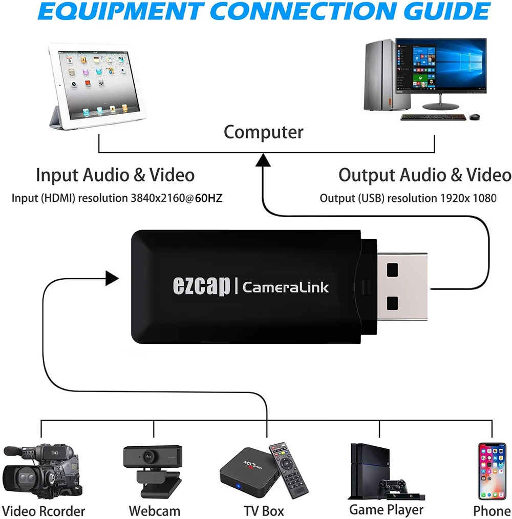 Y & H Карта видеозахвата 1080p60 запись через DSLR, видеокамеру, экшн-камеру, мини-устройство захвата HDMI Поддержка трансляции в реальном времени ezcap313