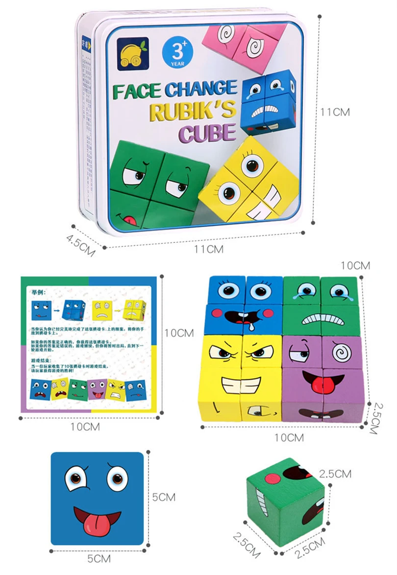Конструктор для смены лица, мультяшный кубик, настольная игра, деревянная головоломка, Монтессори, игрушка, тревога, снятие стресса, игрушки для детей