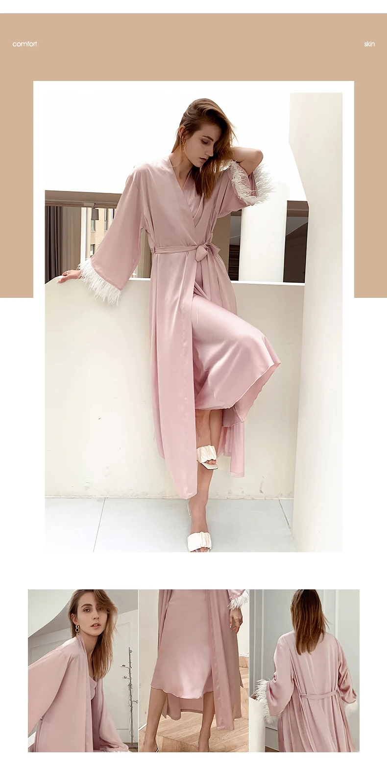 Модный однотонный длинный халат с перьями (только один халат), сделает вас более очаровательным и горячим,Сделайте вас самым сексуальным яблоком в его сердце!