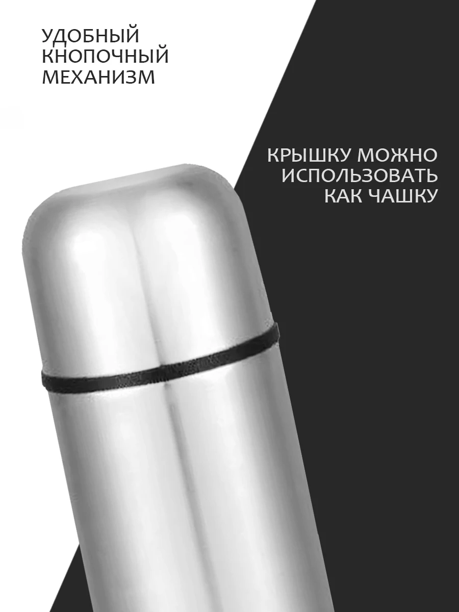 Термос изготовлен из высококачественной пищевой нержавеющей стали, что обеспечивает высокую надежность и долговечность. Современная технология с вакуумной изоляцией и металлической колбой, способствует более длительному сохранению тепла. Через 12-15 часов температура жидкости в термосе будет 48-50 °C. Термос оснащен пластиковой пробкой с удобным кнопочным механизмом-вы можете налить напитки, размотав крышку и нажав кнопку, И крышка может быть использована в качестве чашки термоса удобно использовать дома, на даче, в туре и на рыбалке. Он полезен на работе, в офисе и деловой поездке, экономит электричество и время.