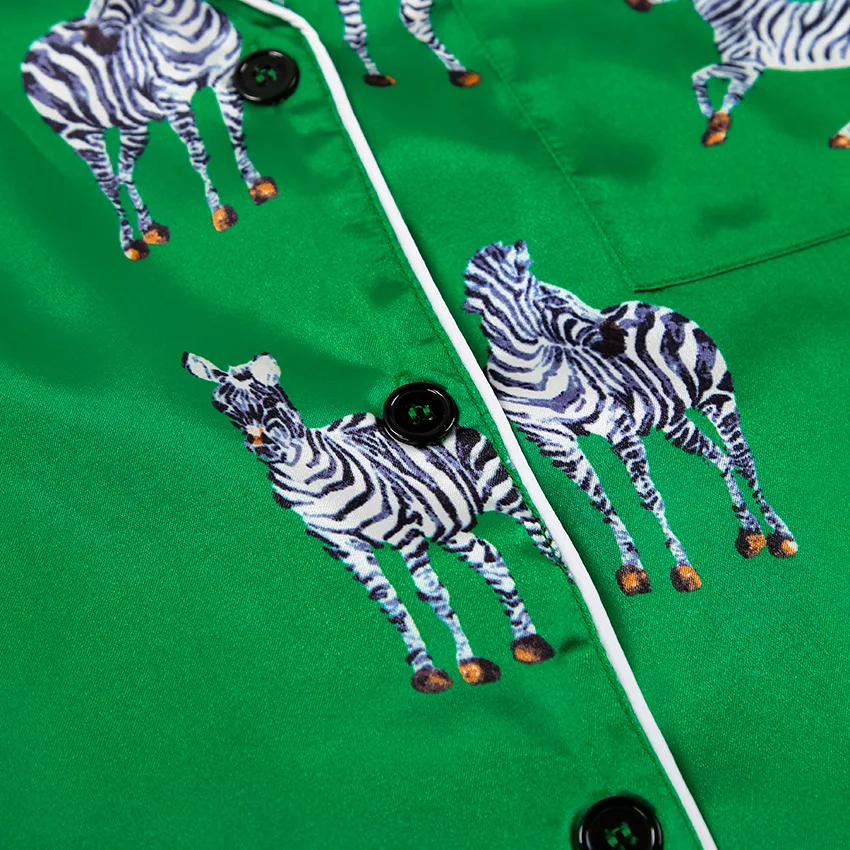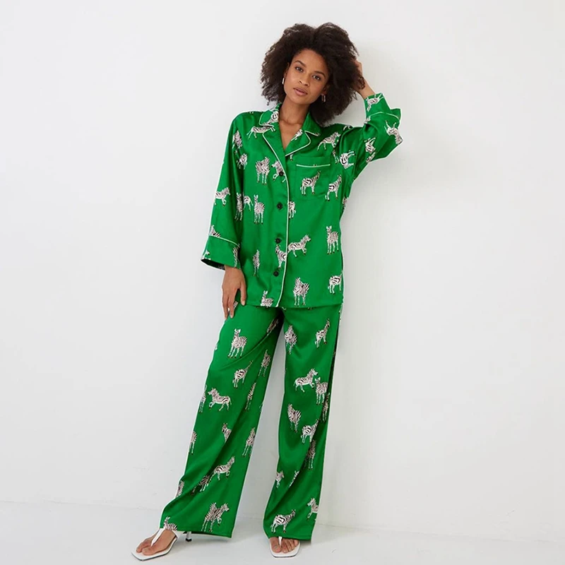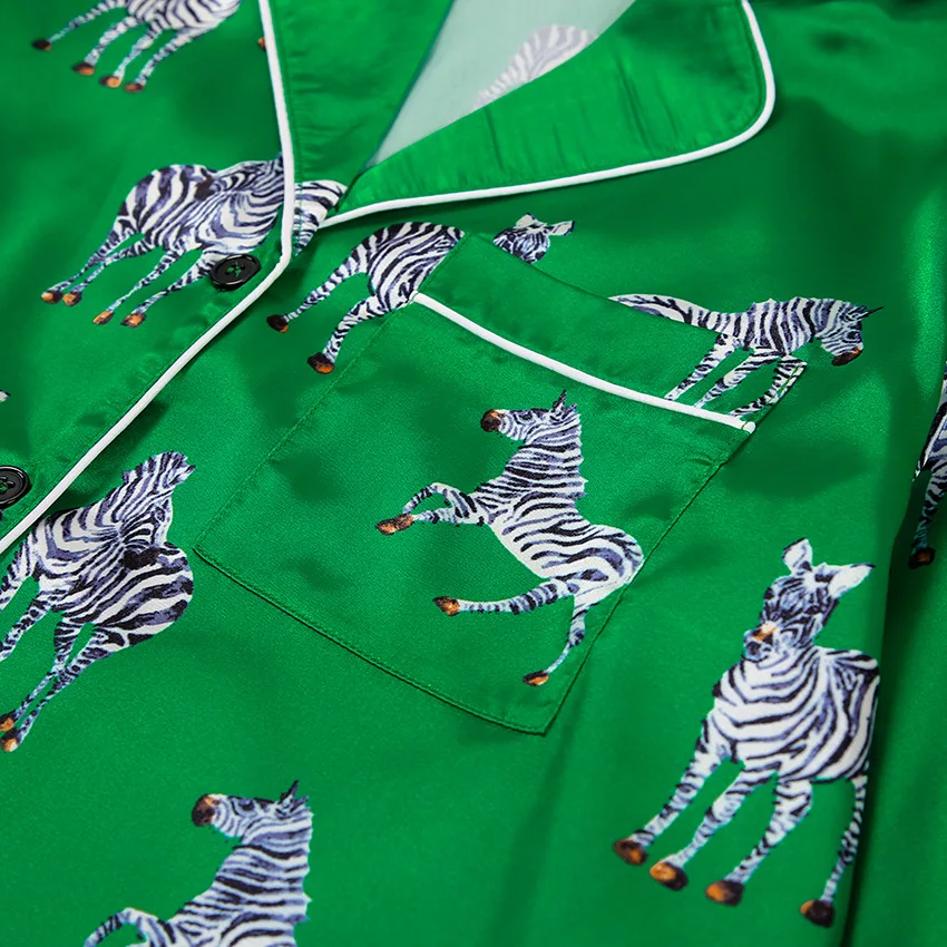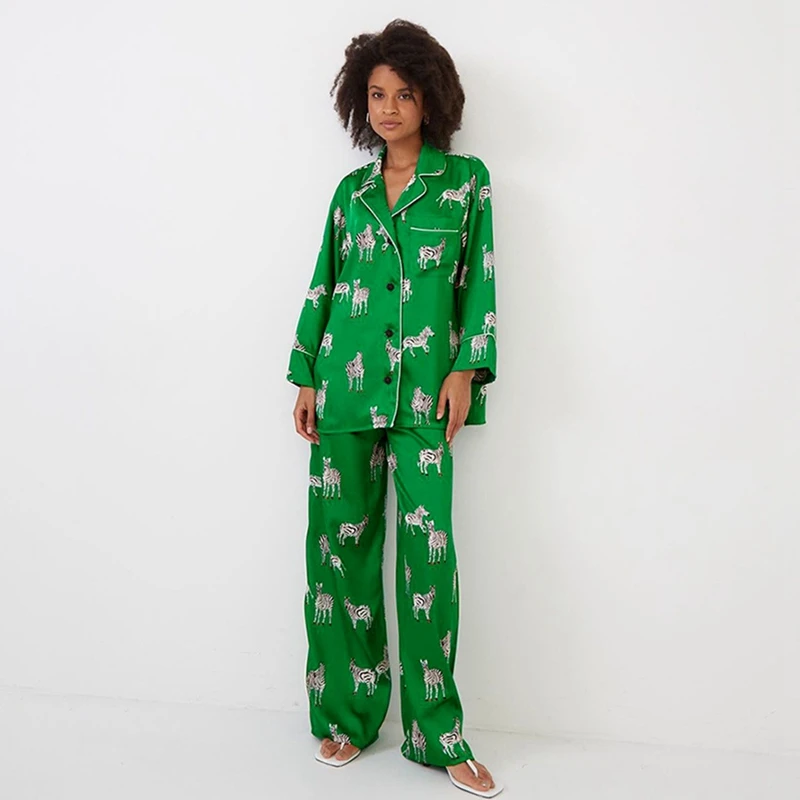 Шелковые пижамы с принтом зебры, домашняя одежда для женщин, атласный Кардиган с длинным рукавом, одежда для сна, 2 предмета, с карманом, шикарный рисунок, костюм, Весна 2022