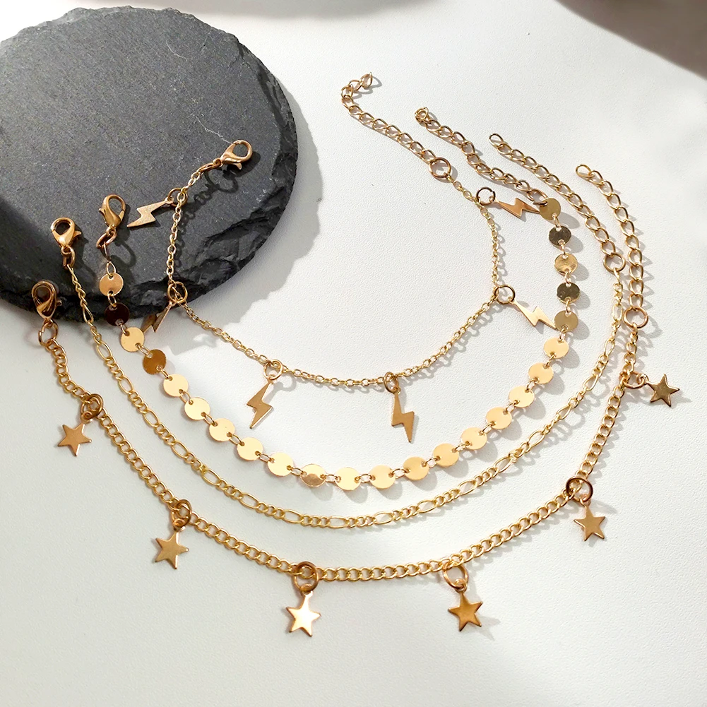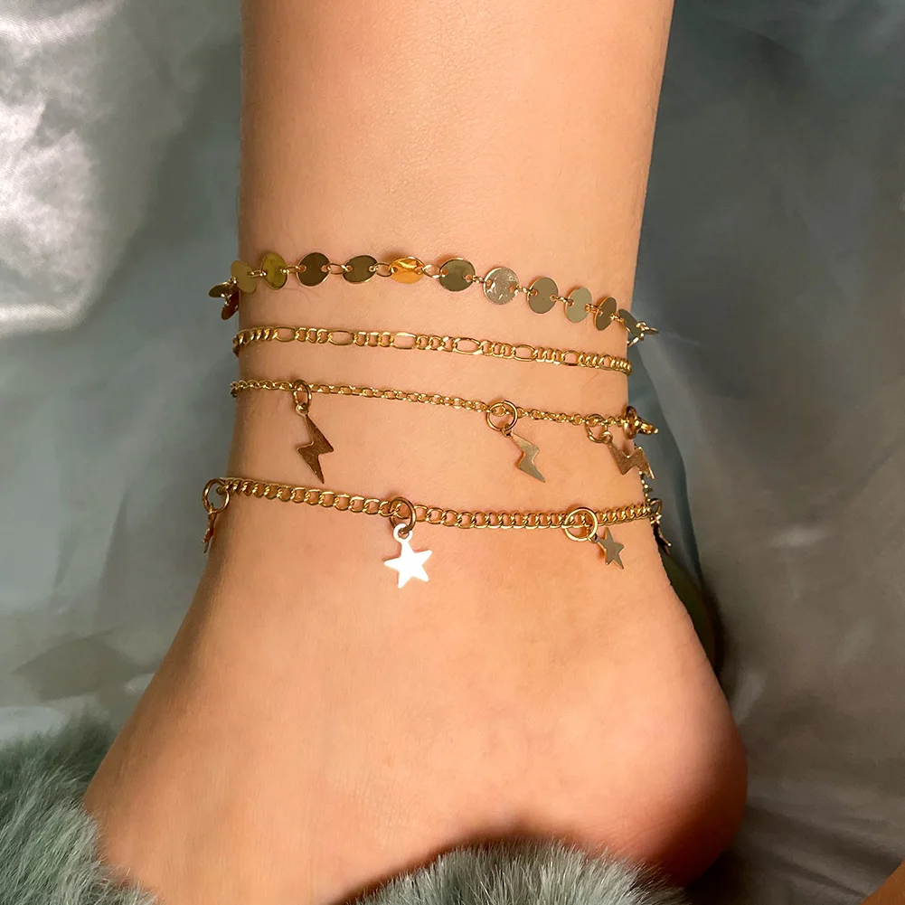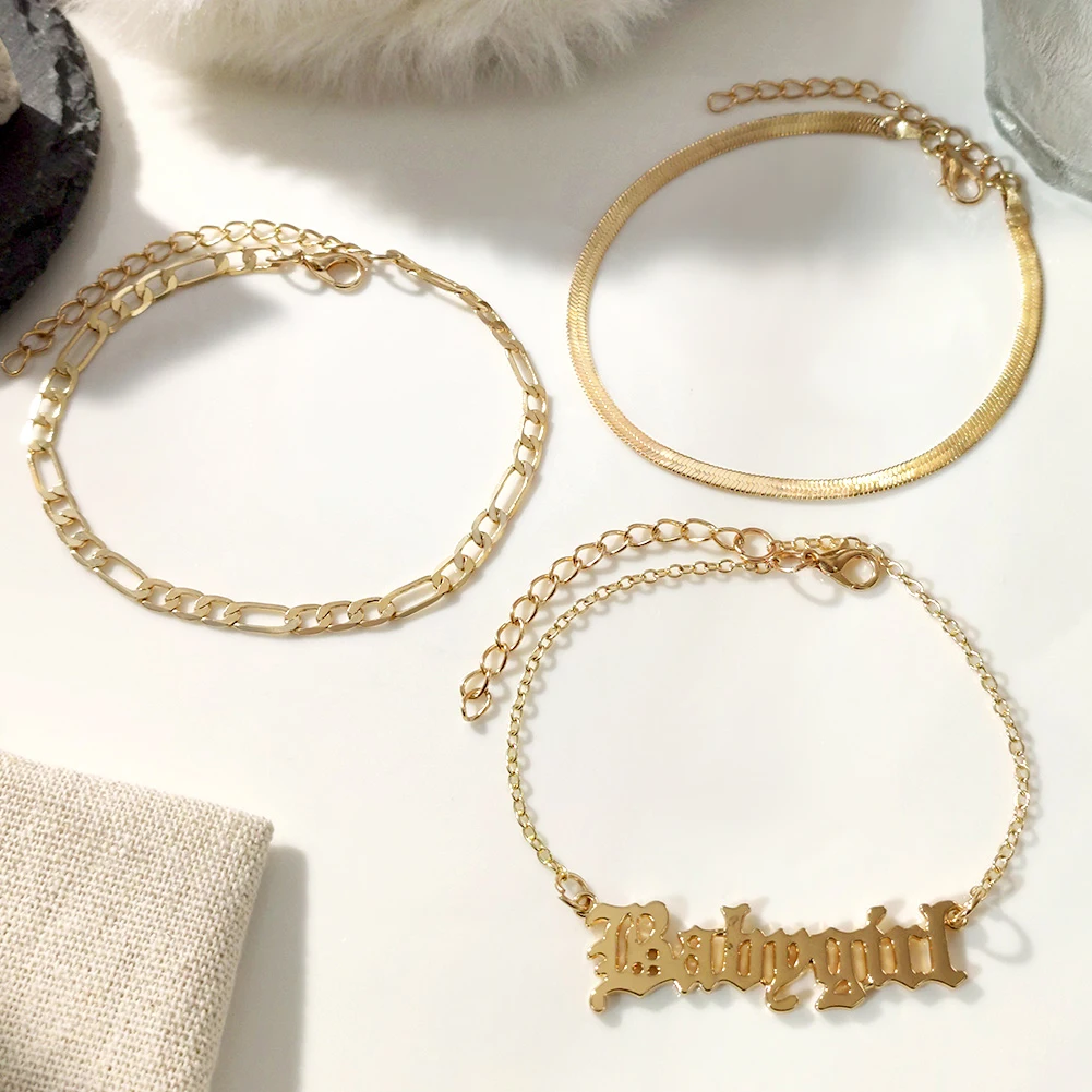 Отзывы о Женские ножные браслеты Flatfoosie золотистые в стиле панк с надписью многослойные