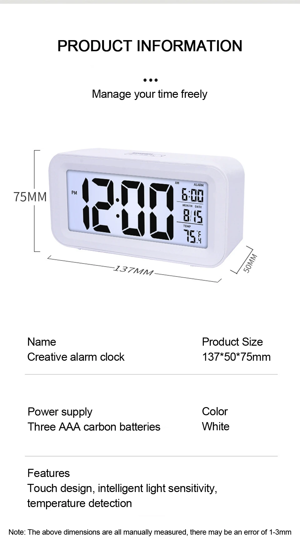 5) эти цифровые часы являются смарт-часами, и они могут включить мягкий белый светильник при ночной падении.