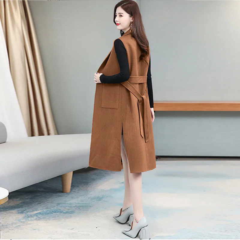 Отзывы о Новинка 2022 г. шерстяной жилет средней длины весна-осень без рукавов Женская