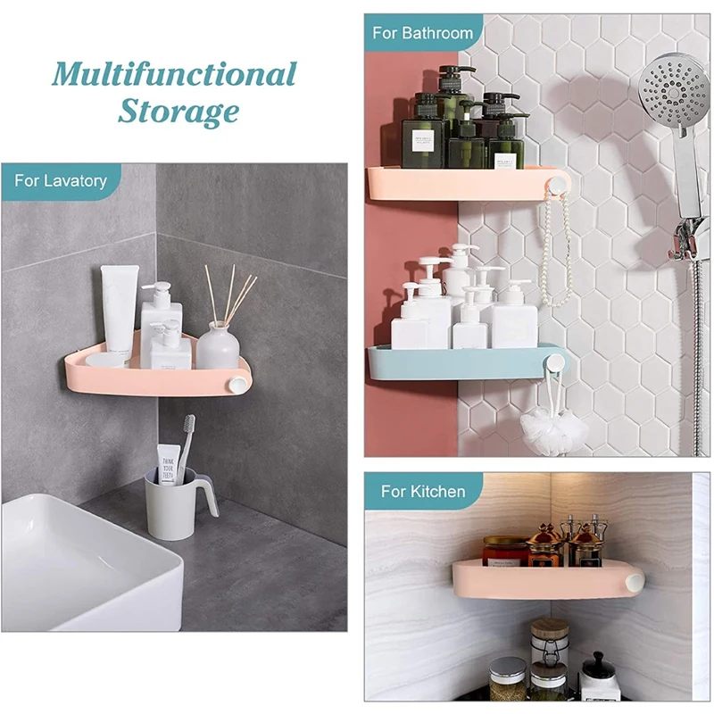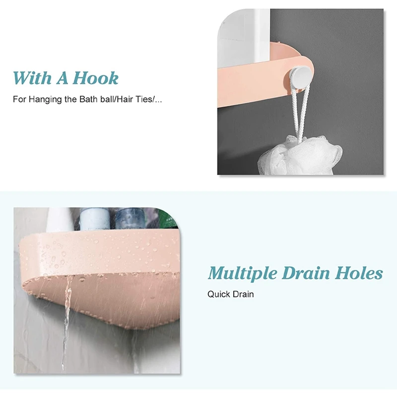 [Special Shower Caddy]Have you ever felt bored seeing the same colors as the other shower caddies? Then you can try these! The design of strong contrast colors will be the highlight for your bathroom, which will make your bathroom more interesting and special! It can match most bathrooms wonderfully! [No Drill Needed] It will not damage your wall. Just peel off the adhesive strip, stick it on a smooth surface, press it to empty the air inside, and then put the shelf on it. [Rustproof & Durable Handle]We use high-quality material to ensure quality and texture. No like stainless steel material, it will never rust or corrupt. It polishes smoothly, which will not hurt your skin. [Attention]Please ensure the wall is clean and dry before sticking it. It can be used on any smooth surface, such as tiles and glass. But not suitable for painted walls, wallpaper, paint, plaster, cement, and rough surfaces. And please wait for 24 hours before putting the stuff. [Corner Storage]It can store your bath supplies, kitchen supplies, and daily necessities. It can be a shampoo holder for the shower, also for soap, and facial cleanser. colour:Pink Material:ABS size:31 x 19 x 5cm Package Contents: 1 x Storage rack Only the above package content, other products are not included. Note: Light shooting and different displays may cause the color of the item in the picture a little different from the real thing. The measurement allowed error is +/- 1-3cm.