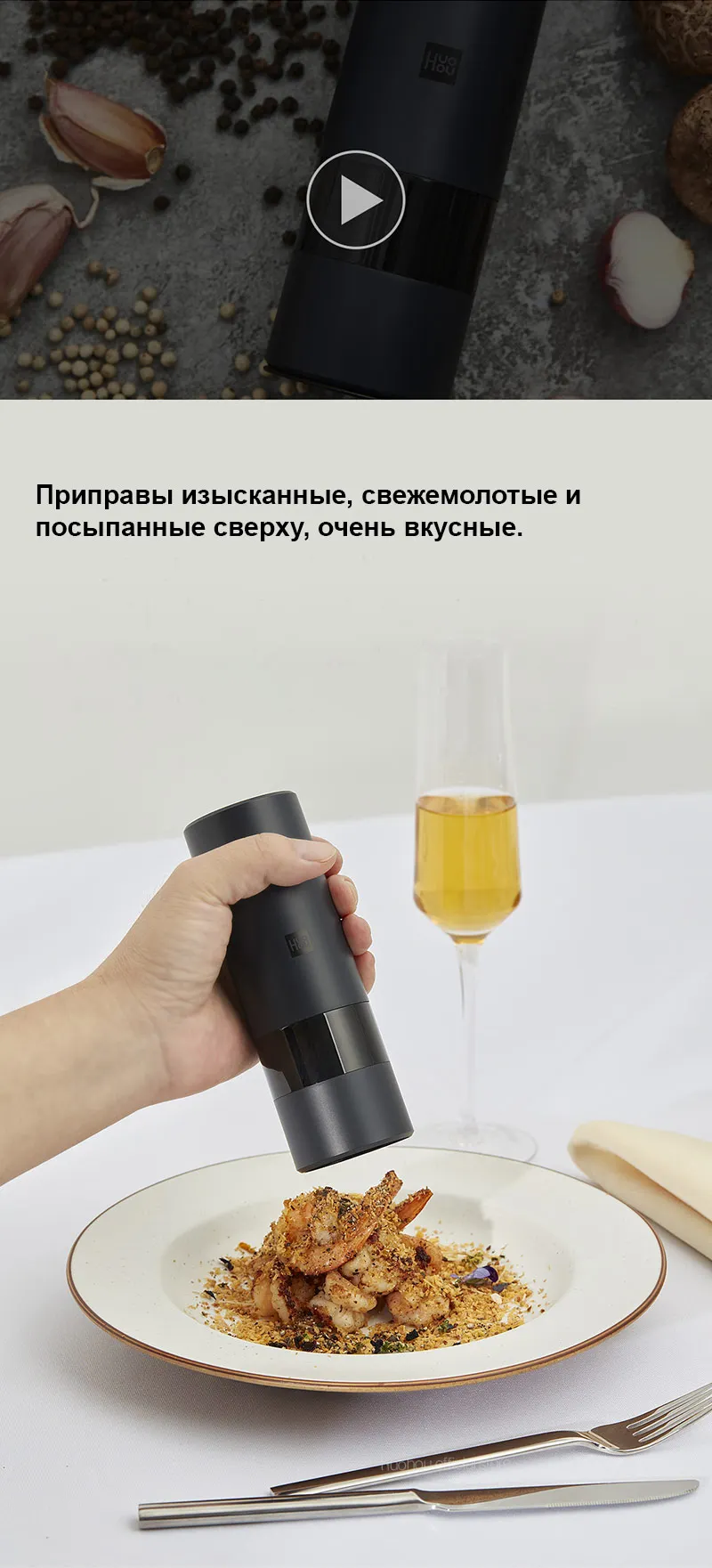 Отзывы о Мельница электрическая Huohou для перца и соли светодиодный светильник кой 5