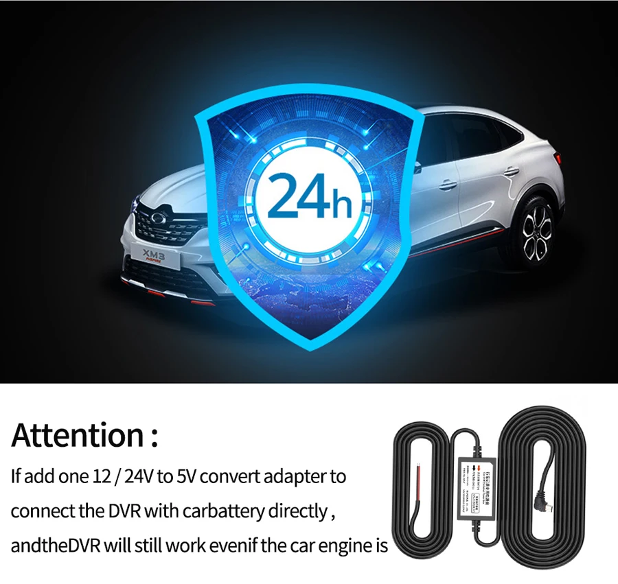 Если добавить один адаптер преобразования 12 / 24 В в 5 В, подключите видеорегистратор с carbattery directlyandthedvr все равно будет работать, если двигатель автомобиля