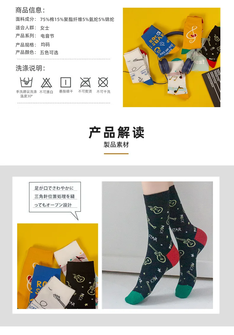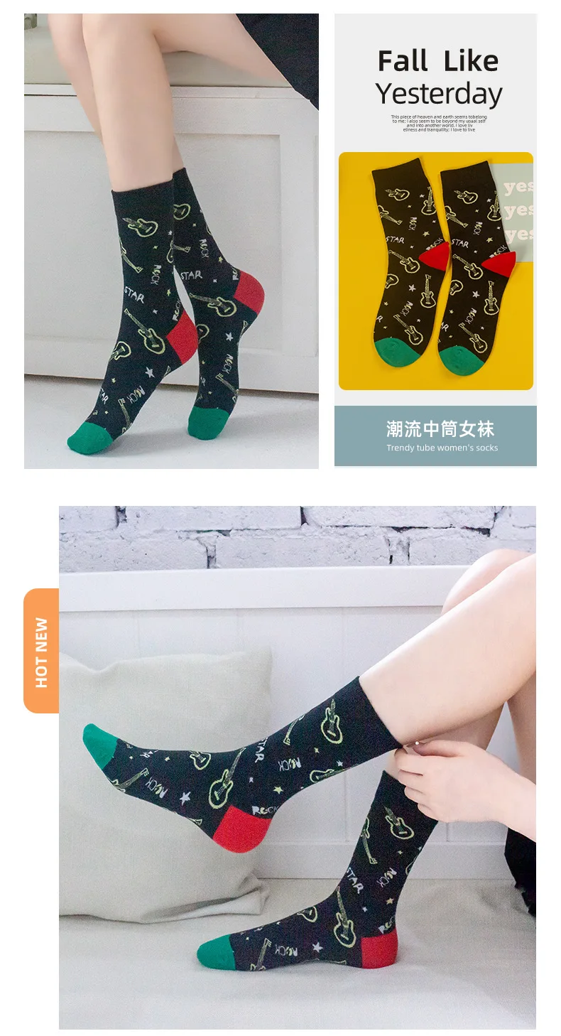 Отзывы о Женские носки с надписью Happy Viennese Music модные для заметок гитары креативные