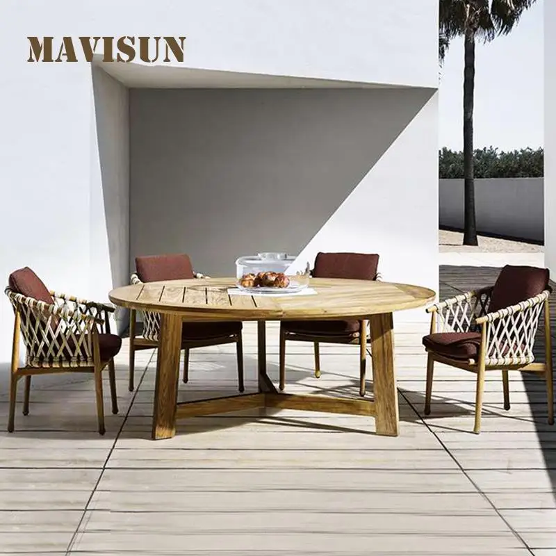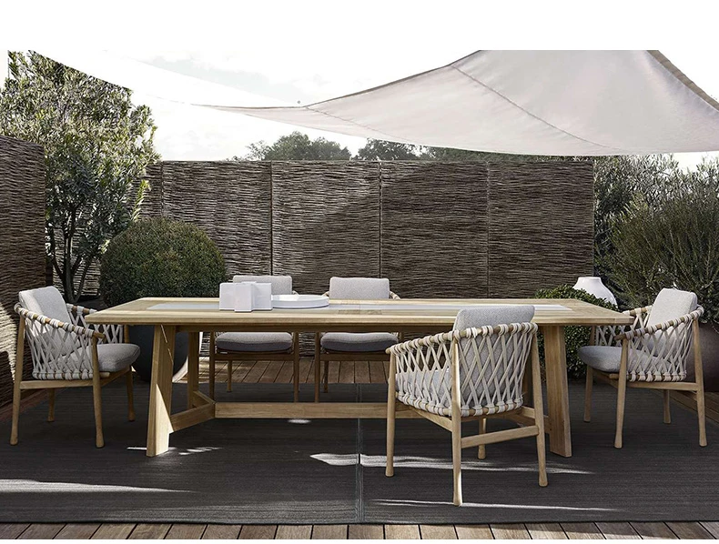 Напольный стол и стул для двора вилла скандинавский балкон для отдыха Тиковая твердая древесина ротанга стул терраса мебель для столовой