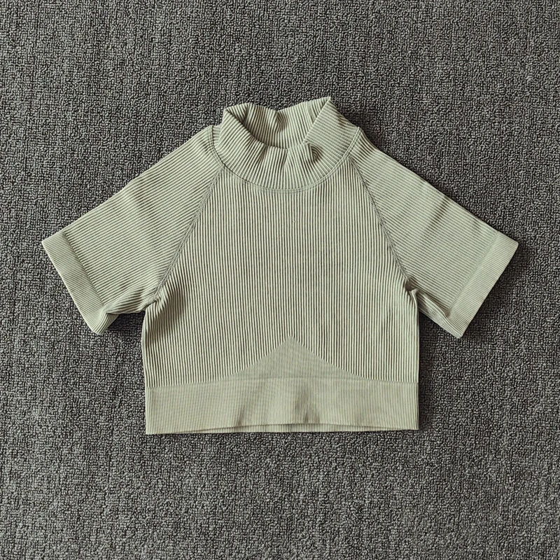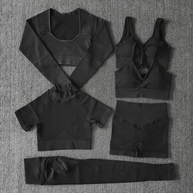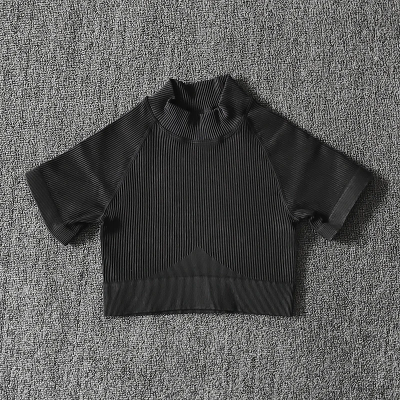Бесшовный Женский Набор для йоги, ребристые потертые спортивные костюмы, укороченный топ, рубашка, леггинсы для спортзала, одежда для тренировок, фитнеса, спортивный костюм