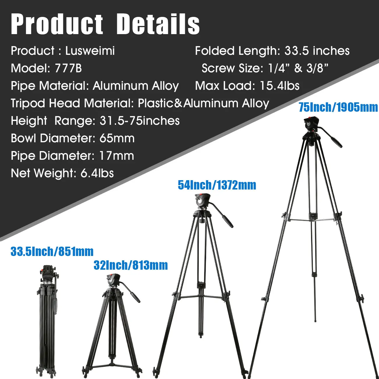 Этот штатив разработан с конструкцией из алюминиевого сплава, более прочный и долговечный с эффективной амортизацией. Грузоподъемность до 11 фунтов, а диапазон регулировки высоты от 31,5 до 75 дюймов. Имеют широкий диапазон применимости, подходит для камер Canon Nikon Sony Fujifilm Ricoh Panasonic Leica.
