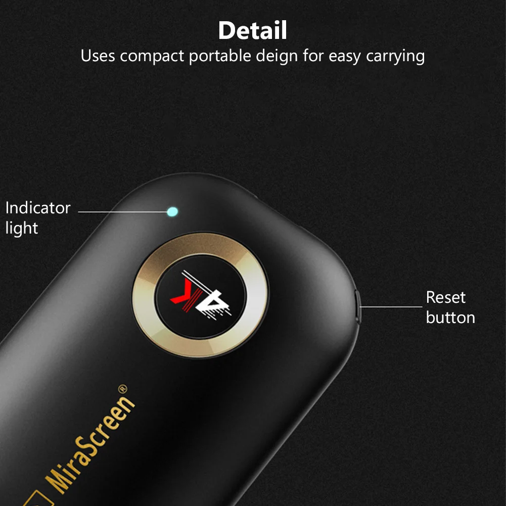 4K Ультра HD дисплей. Работает с разрешением 4K(3840X2160), этот адаптер Miracast предлагает Вам самые четкие и яркие изображения на большом экране. Вы можете непосредственно зеркало или отбросить свой телефон, коврик, ноутбук на совместимые с HDMI устройства, такие как телевизоры, проекторы и мониторы.!