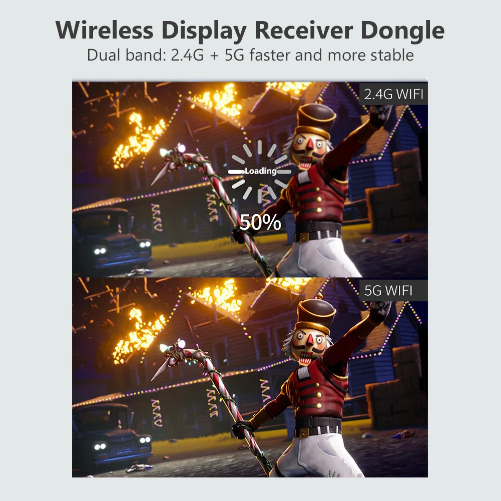 Мощная совместимость. Поддержка 5G/2,4G двухдиапазонный WiFi с 802.11ac Избегайте помех, плавный переключатель с 5G и 2,4G. Поддерживает Android 4,2 или выше, iOS 8,0 или выше, Mac OS 10 или выше, Windows 8,1 или выше. Поддерживает Miracast, Airplay и DLNA.!