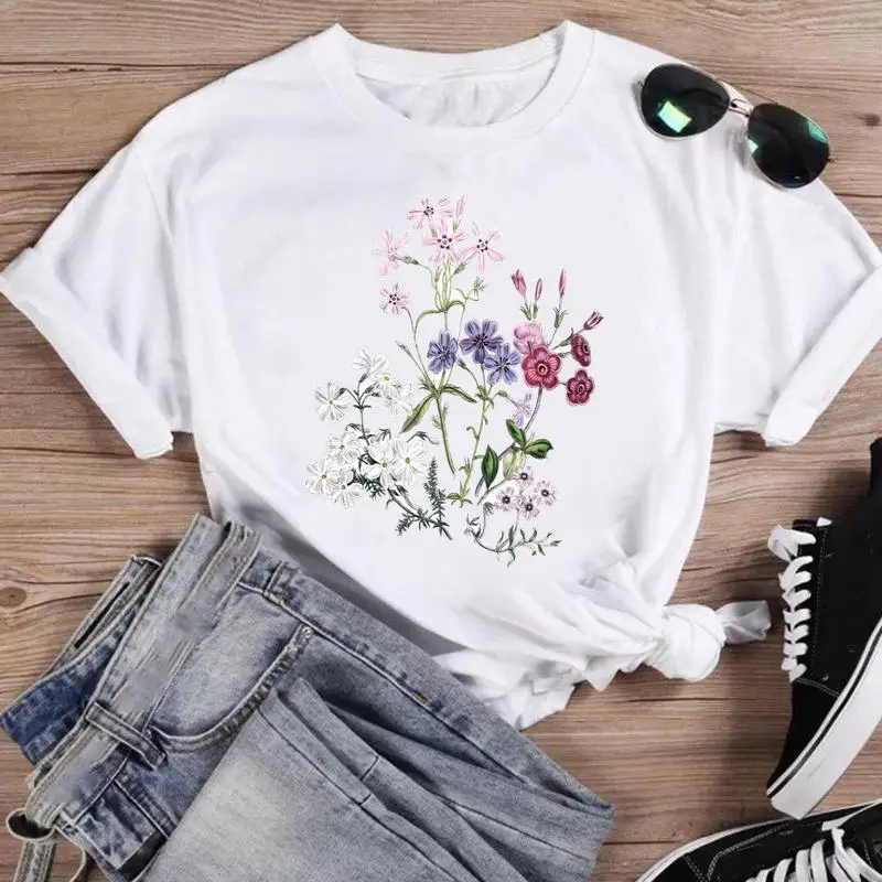 Отзывы о Женская футболка с коротким рукавом принтом акварелью и цветочным - купить по