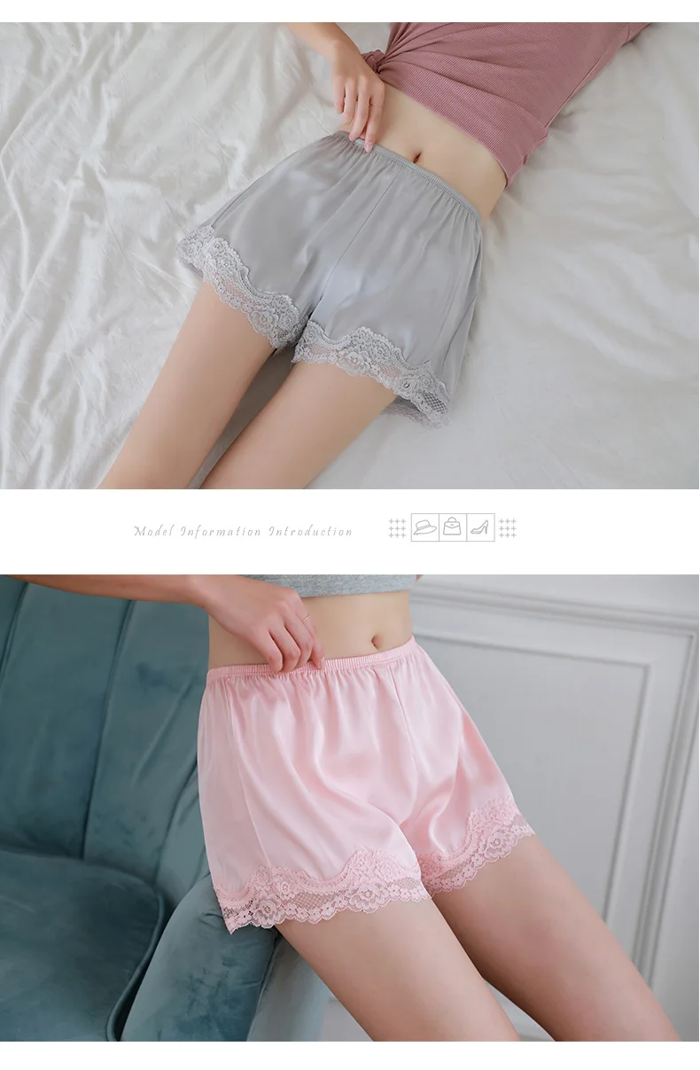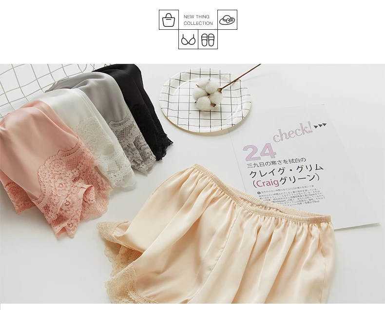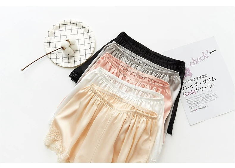 Отзывы о Sexy Lace Satin Knickers Women Summer White Black Pink Gray Thin Ice Silk Solid Color Safety Shorts Stretchy Panties Bloomers | Женская