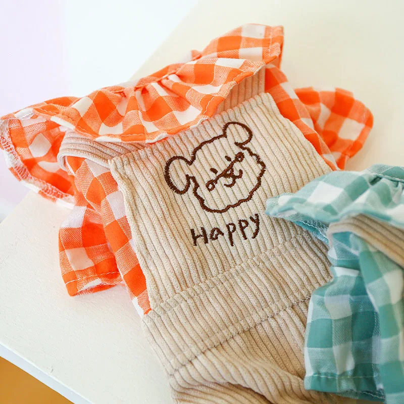 Весенне-осенняя одежда для домашних животных комбинезоны для собак рубашка с воротником в виде листьев лотоса вельветовые штаны фальшивая лямка куртка для кошек и собак комбинезон, пижамы для йоркширов