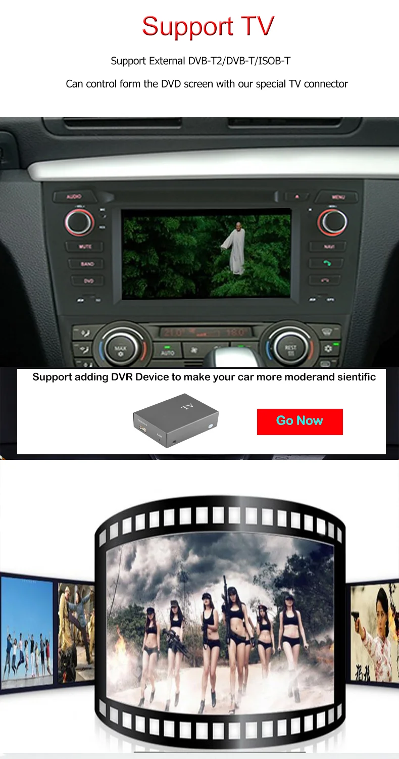 Optional Functions:1) DVB-T / ISDB-T/ ATSC2) Rear View Camera3) DVR /3G/AUX