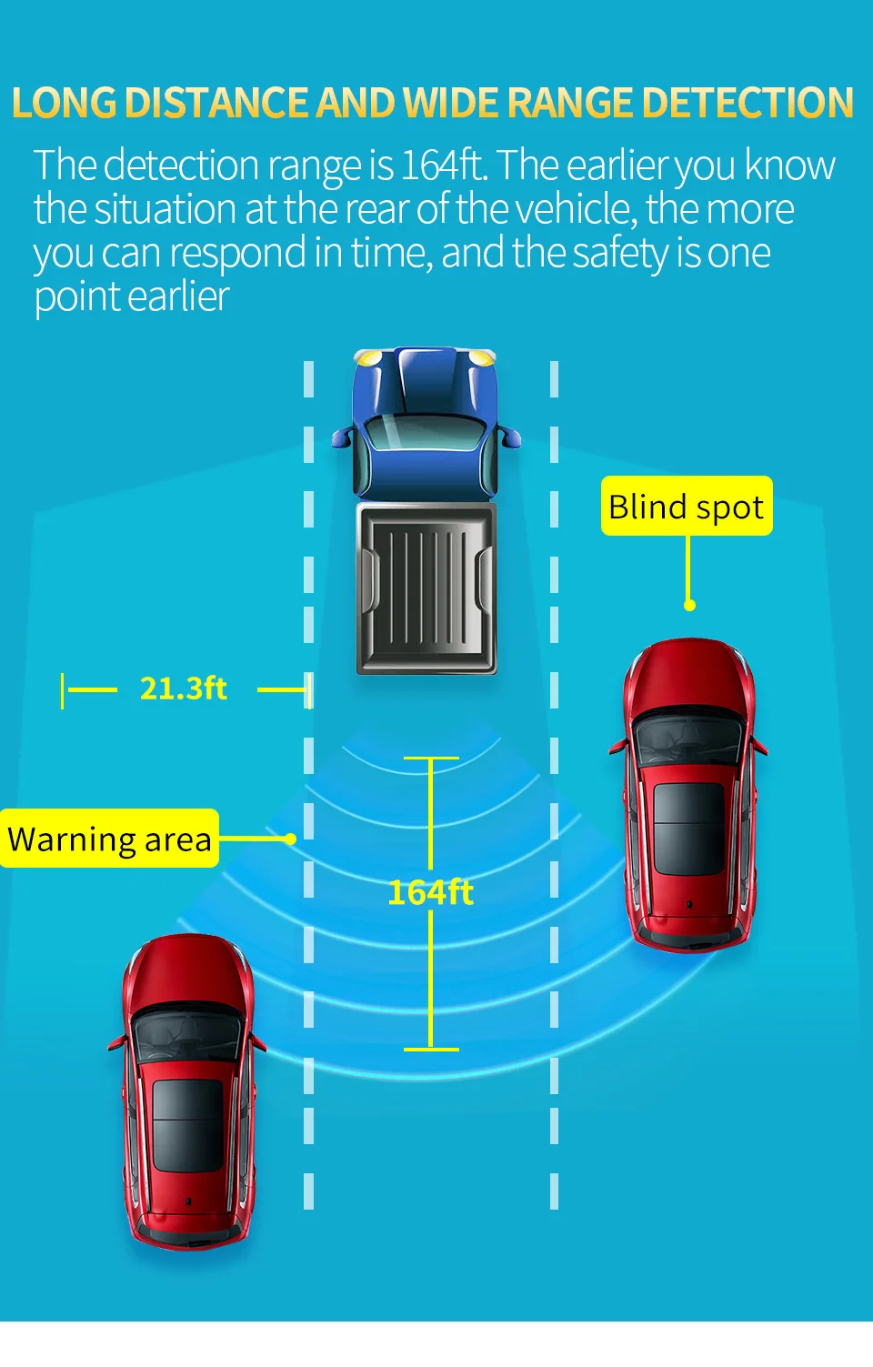 2. Наш мониторинг слепых зон может различать стационарные и движущиеся объекты. Фиксированный объект не тревожит. Есть сигнализация при отслеживании движущихся транспортных средств, пешеходов, велосипедов и мотоциклов.