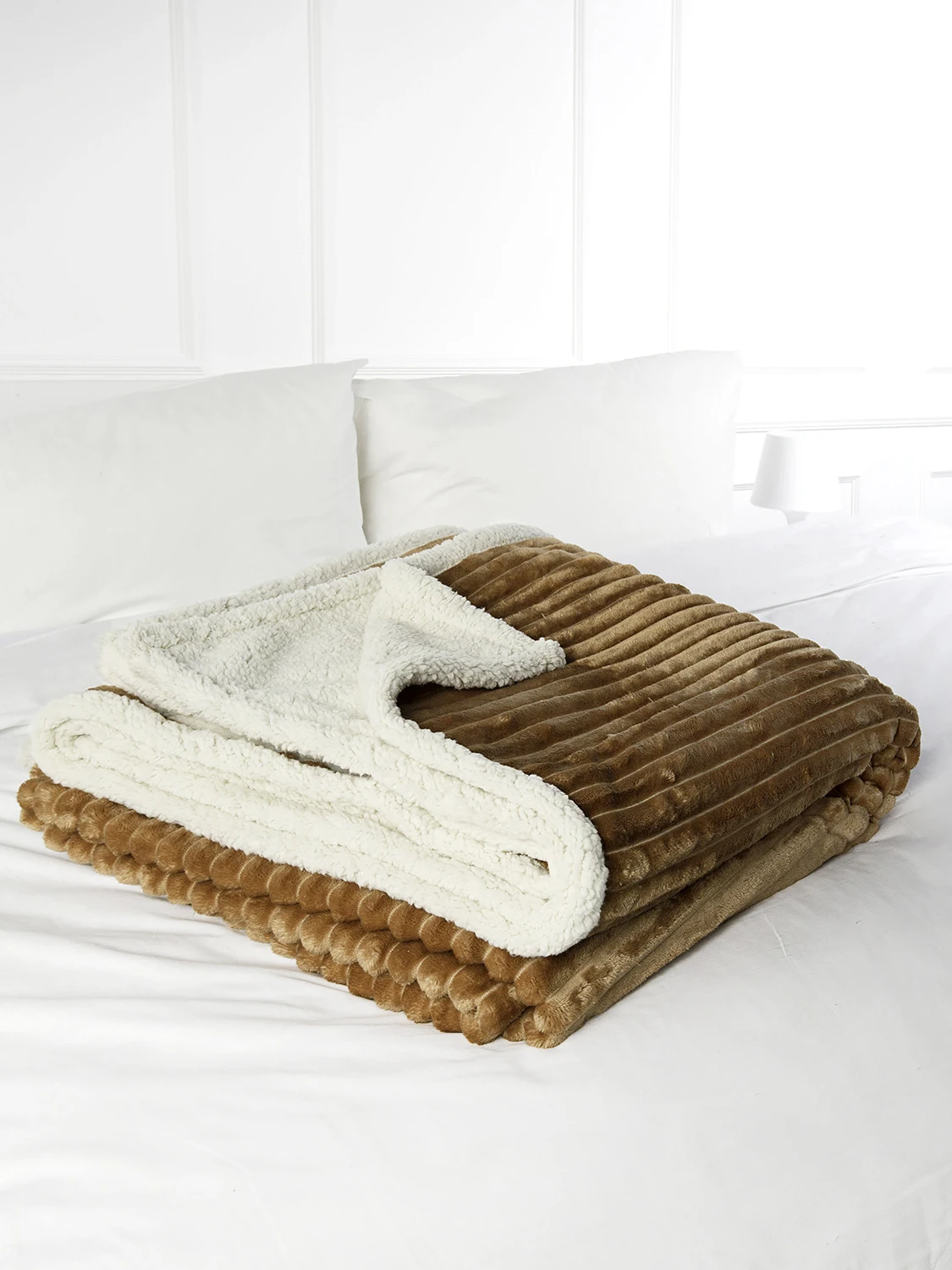 Плед из искуственого меха необычайно мягкий и теплый. Под таким пледом приятно укутаться и взрослому и ребенку. Плед выполнен в двустороннем формате. На лицевой части гладкий и приятный на ощуп искуственный мех. На второй стороне мех имитирует шерсть овцы и придает пледу элегантный стилль.