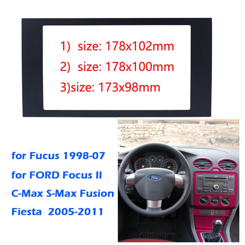 Тип шума: 2 шумовая рамка Соответствующий тип транспортного средства: ford focus ii, c-max 2005-2011; s-max, слияние, транзит 2006-2011; fiesta, galaxy 2006-2008; kuga 2008-2012Год: 2005 2006 2007 2008 2010 2011 2012Установка приборной панелиСпециальные Особенности: установка автомобильного радио/мультимедийного Проигрывателя androidМатериал: АБС-пластикТип цвета: черныйВнутренний Размер: 178*102 мм и 173*98 мм и 178*100 мм1) размер двойного шума: 178x102 мм (7 "x 4")2) размер двойного шума: 178x100мм