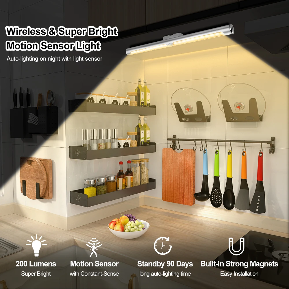 Движения сенсор шкаф огни, перезаряжаемая 22-светодиодная подсветка под шкаф приспособление, CFGROW Крытый беспроводной светодиодный ночник Настенный светильник сенсорный контроль палка-в любом месте для кровати лестницы кухонный шкаф прихожая