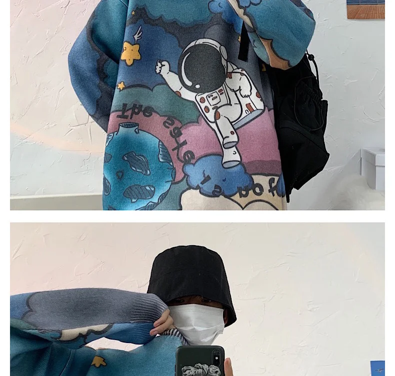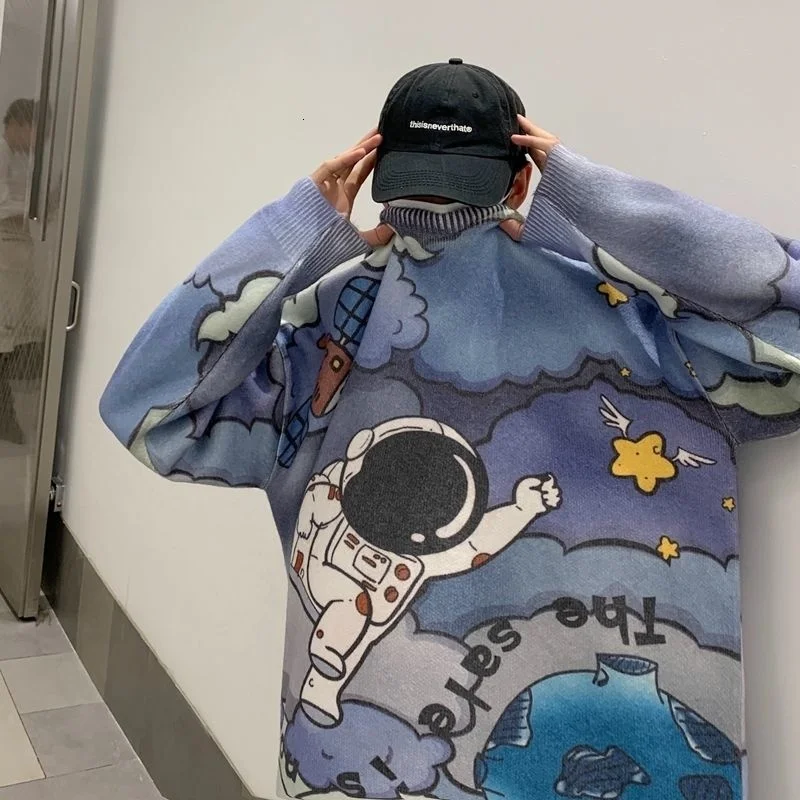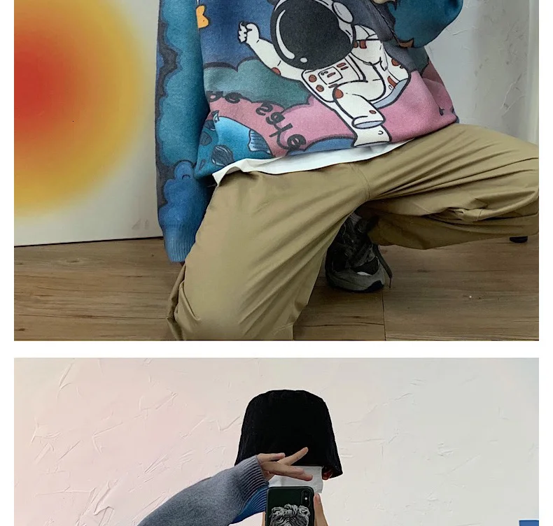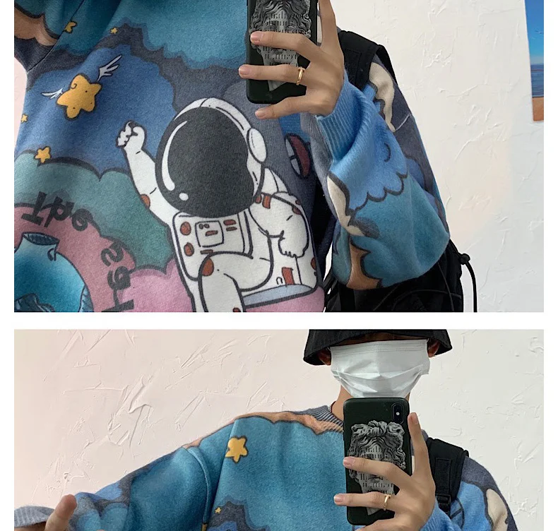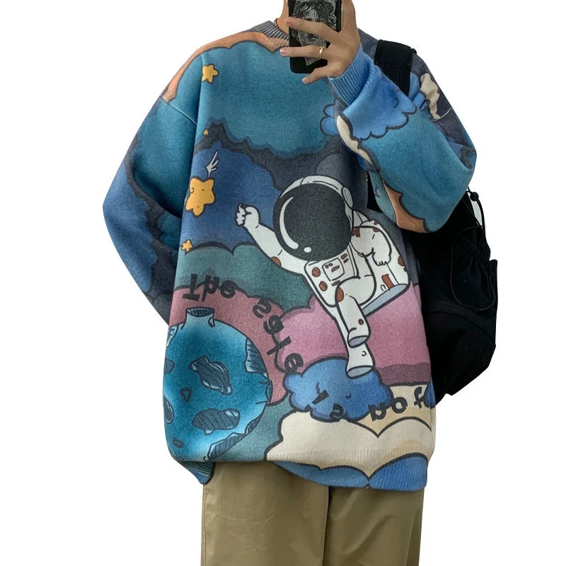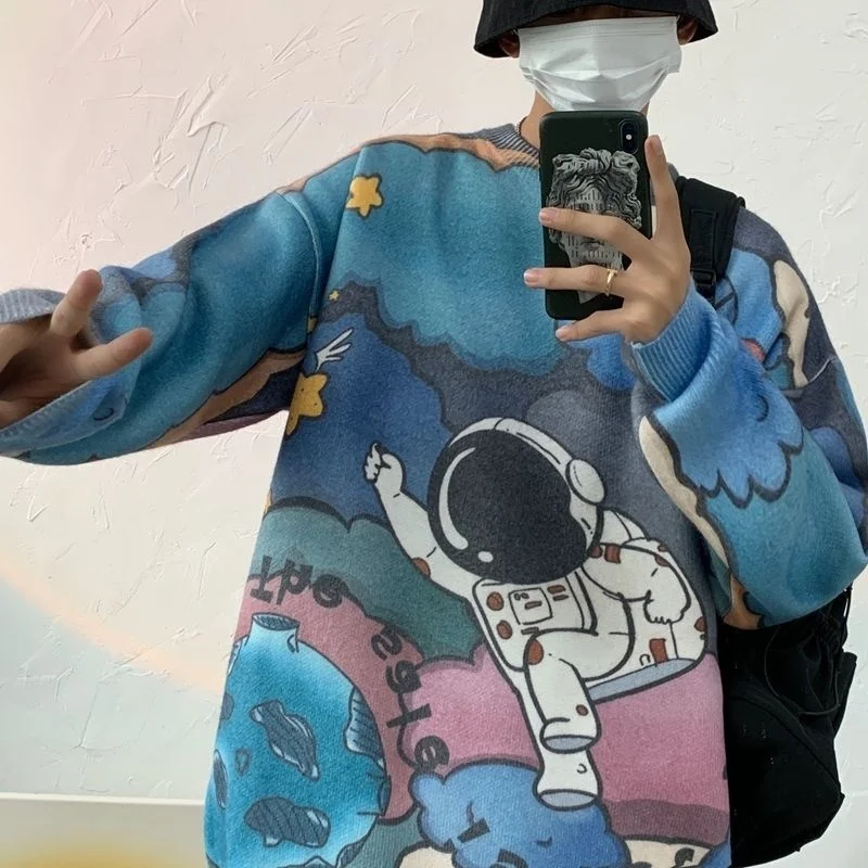Отзывы о Мужской Трикотажный Свитер оверсайз с принтом астронавта | Мужская одежда