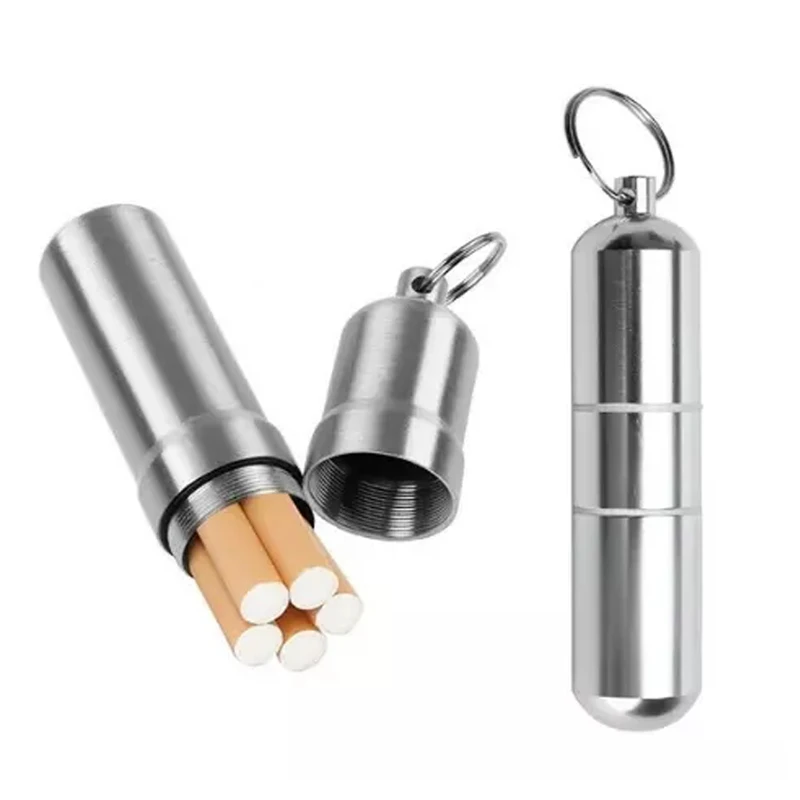 Серебряный алюминиевый сплав коробка для сигарет водонепроницаемый чехол для сигарет таблетки зубочистка капсула держатель с брелком мужской подарок
