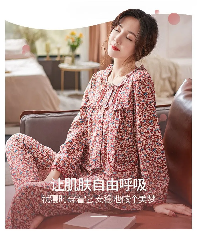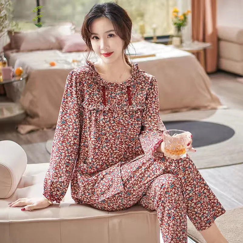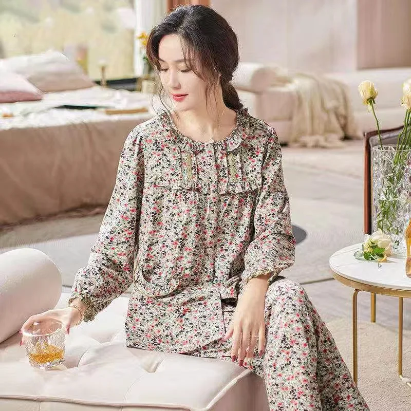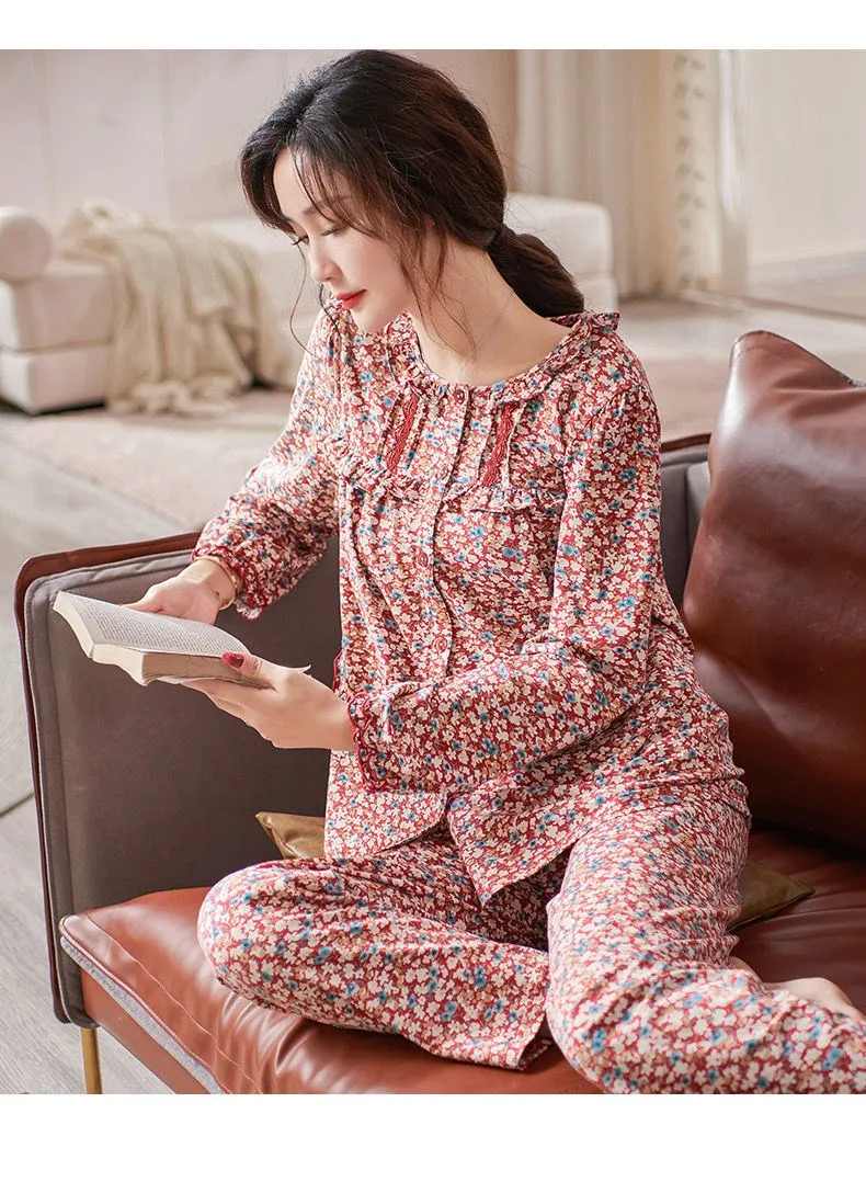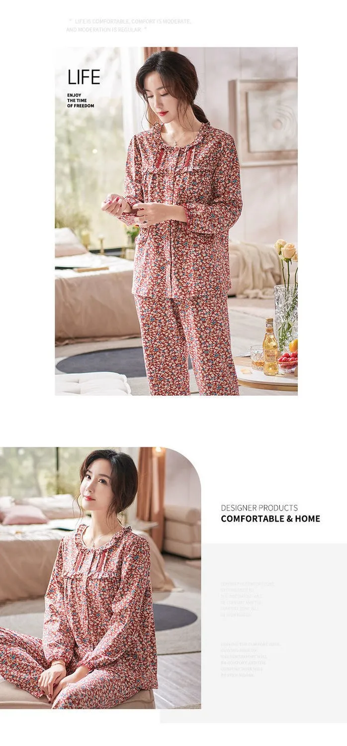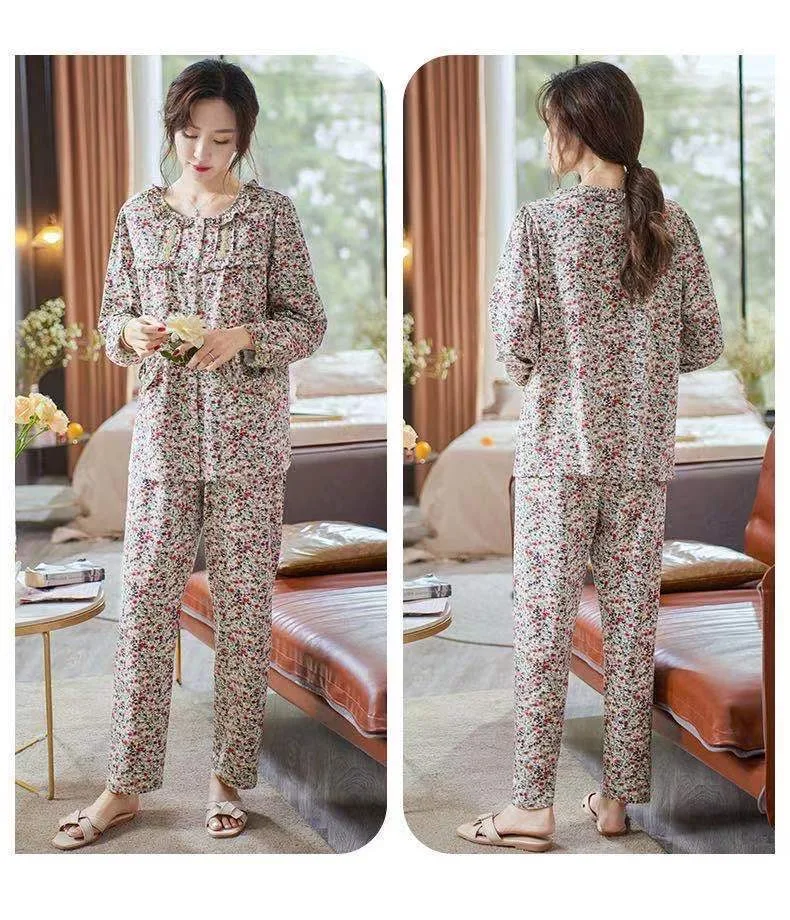 Отзывы о Пижамный комплект Женский хлопковый с длинным рукавом и цветочным принтом -