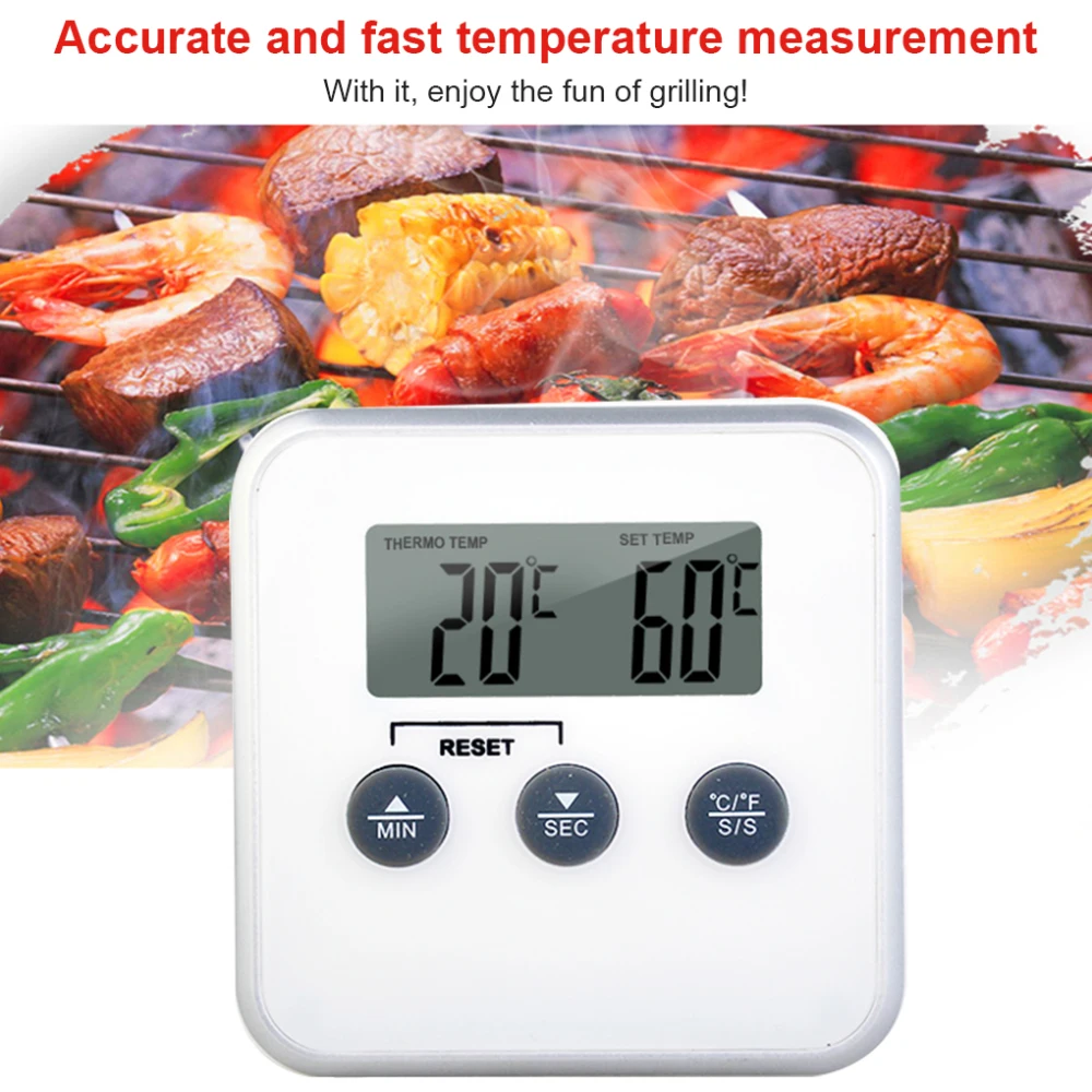 Многофункциональный: датчик температуры еды разработан с функцией таймера и регулируемой установкой температуры, помогая вам готовить лучше.