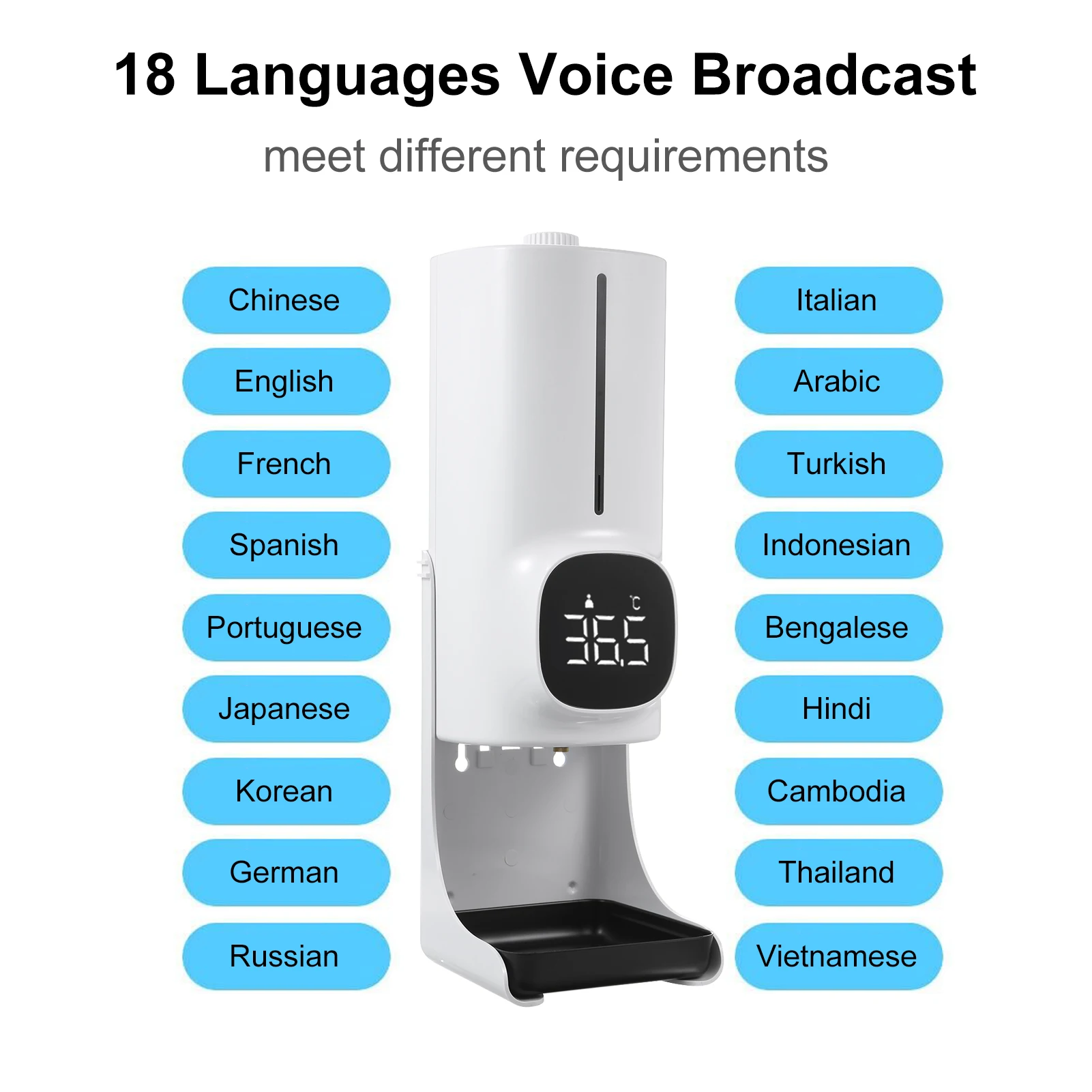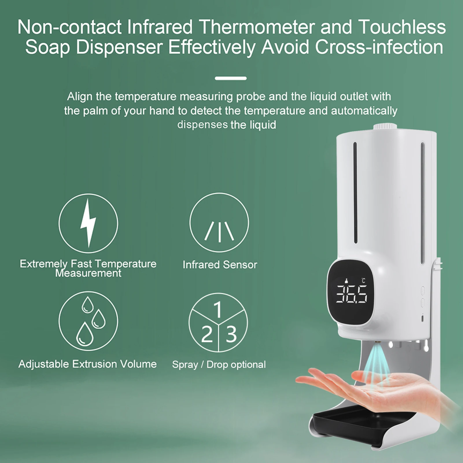 2 в 1 Многофункциональный:Сенсорный диспенсер для мыла и автоматическое измерение температуры «2 в 1», эффективно избежать перекрестных инфекций. Автоматически определяет температуру и распределяет жидкость, безопаснее в использовании.
