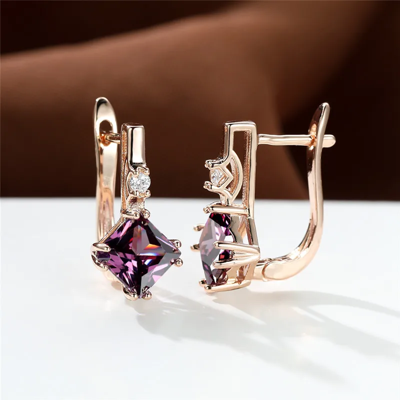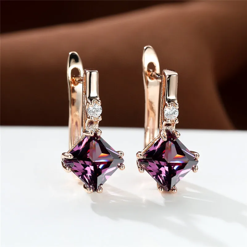 Отзывы о Свадебные серьги под старину золотого цвета фиолетовые кристаллы квадратные с