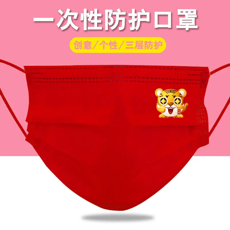 Фу маска красная маска для лица тигр Новый год 2022 Тигр маски для лица 2022 Весенний фестиваль Счастливый Китайский Новый год Свадебные Маски на Хэллоуин
