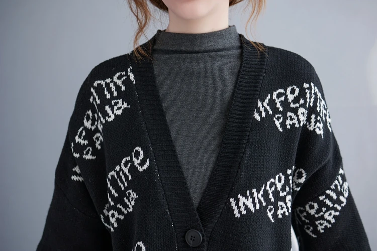 Отзывы о Вязаные кардиганы для беременных с черно-белыми буквами и V-образным вырезом