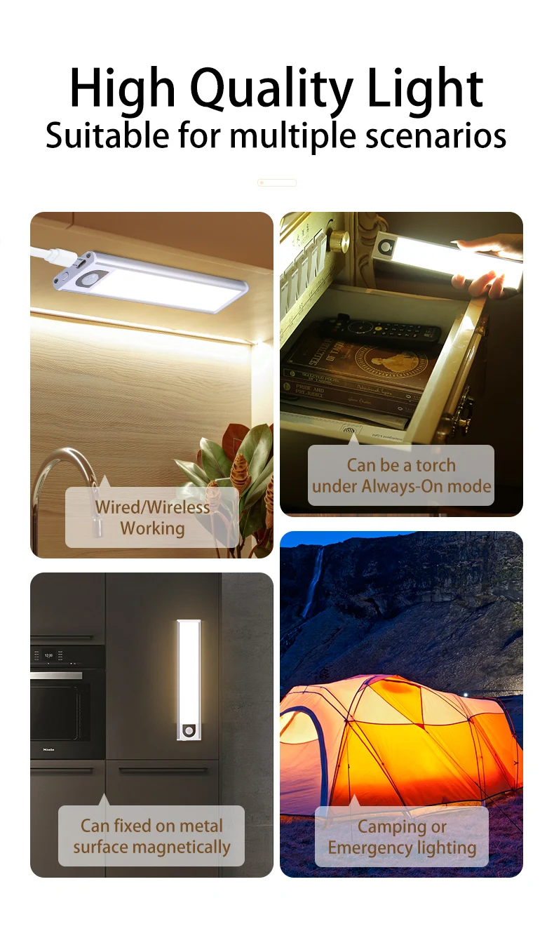 Предлагаем 3 варианта цвета. Теперь вы можете украсить свой дом разными цветами, как светильник. Теплый белый светильник в коридоре подарит любовь и тепло вашей семье. Холодный белый светильник под шкафом, чтобы осветить кухню и быть более безопасным при приготовлении пищи. Кроме того, естественный белый светильник всегда является лучшим для работы и учебы.