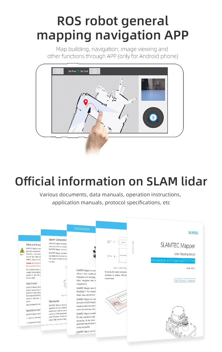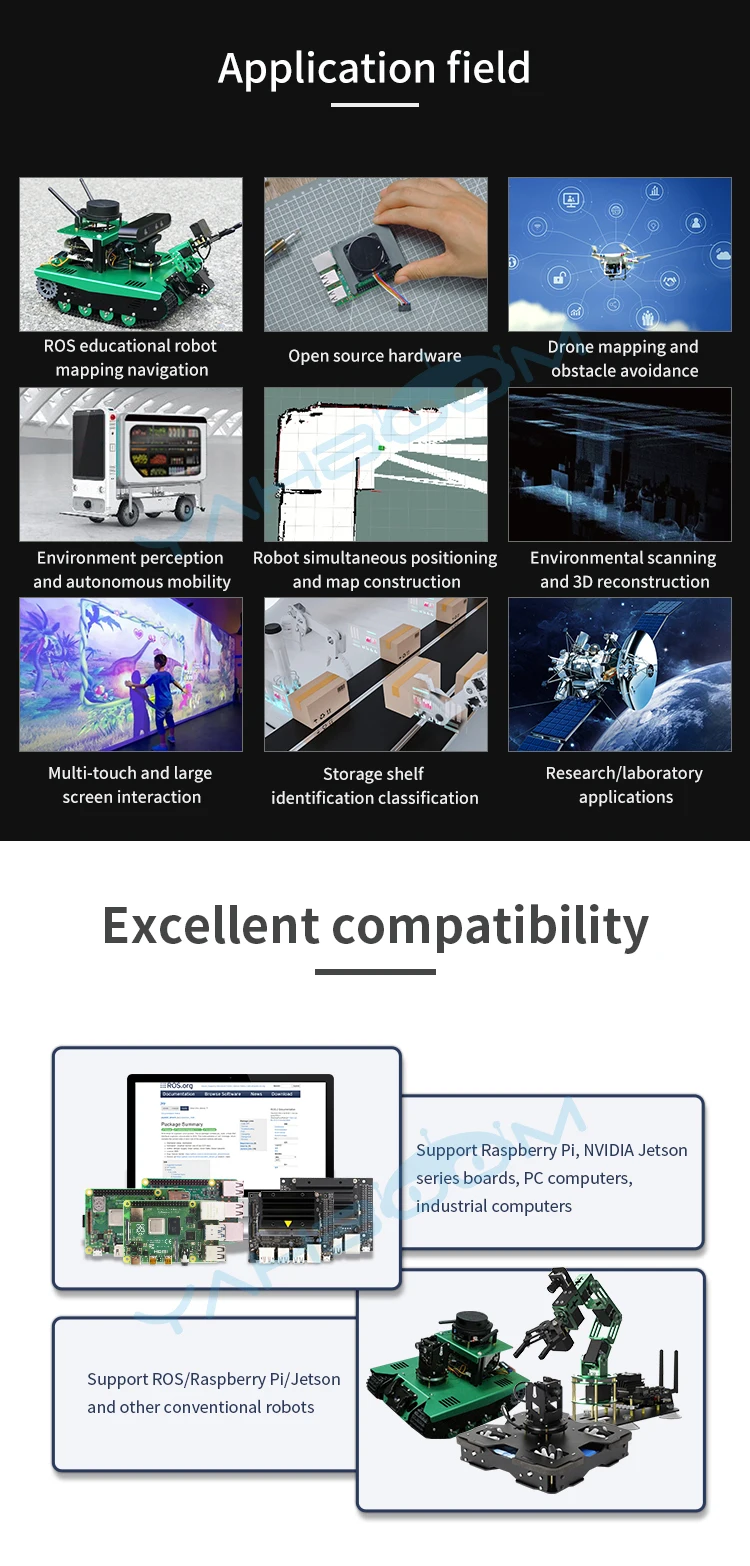 * Подходит для программирования роботов для синхронизации позиционирования и построения карт, сканирования окружающей среды и обнаружения препятствий.