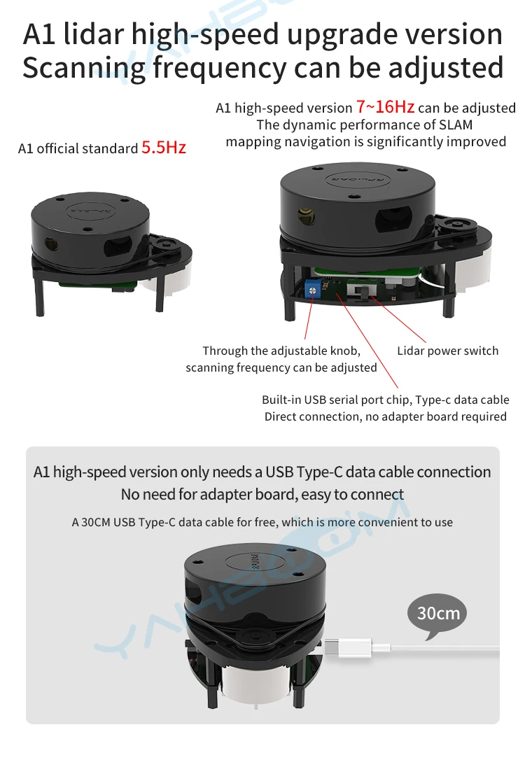 SLAM лидар в настоящее время является самым популярным и экономически эффективным лидаром в области оборудования с открытым исходным кодом. Он обладает небольшими размерами и отличным качеством, поддерживает сканирование на 360 ° и измерение расстояния, может использоваться на персональном компьютере или Jetson NANO Raspberry Pi и других микроконтроллерах с помощью USB-кабеля для передачи данных. Мы предоставим множество учебных материалов и кодов, а также учебные материалы для роботов ROS. Эти лидар разделены в 6 различных моделей, каждая из которых имеет различные форму и представление, и потребители могут выбрать согласно их требованиям.Особенности* Метод измерения треугольного расстояния, радиус измерения составляет 12 метров, частота измерения может достигать 8000 раз в секунду, а частота сканирования составляет 15 Гц.