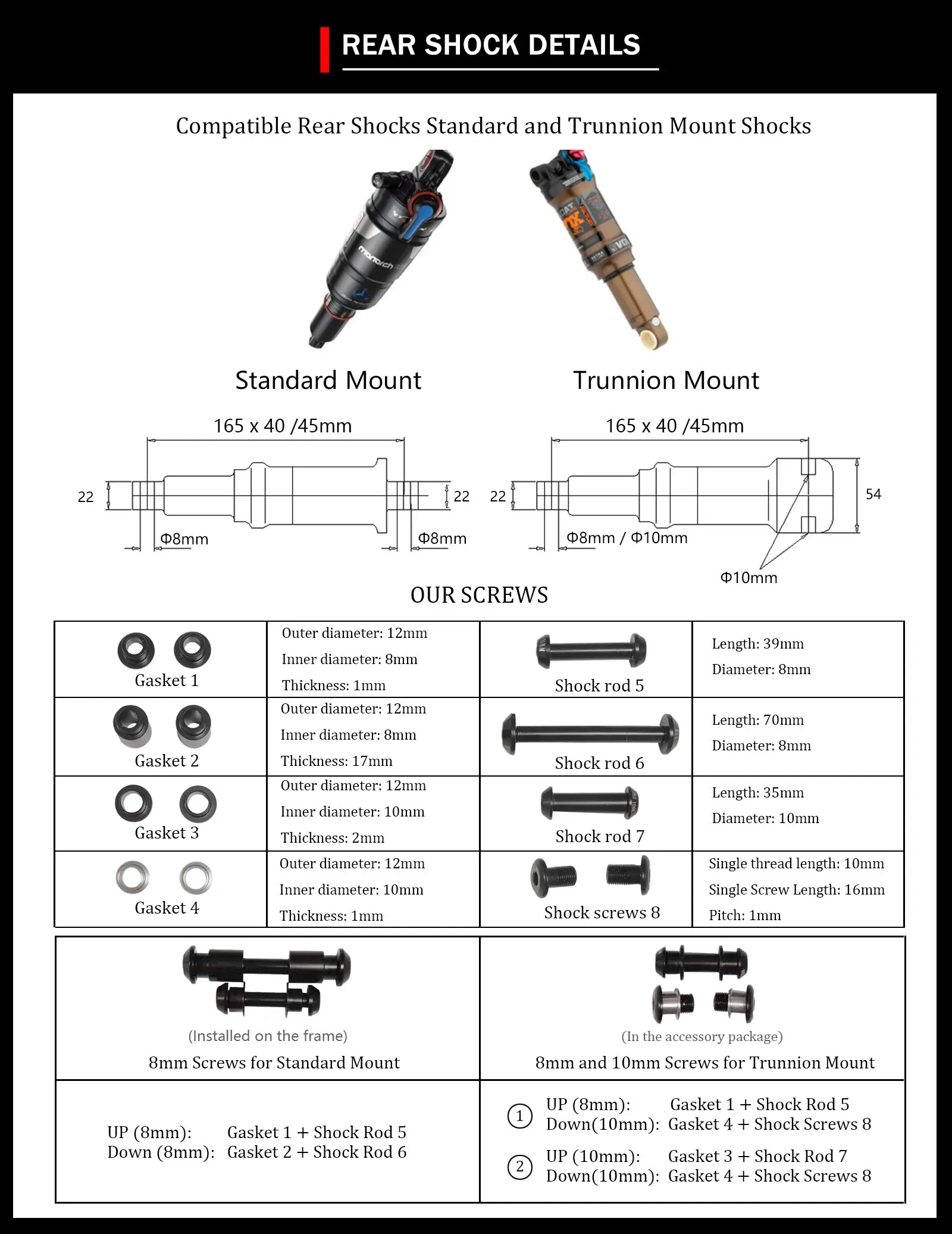 Задний амортизатор | 165*40 Путешествия 100 мм; 165*45 путешествия 115 мм |