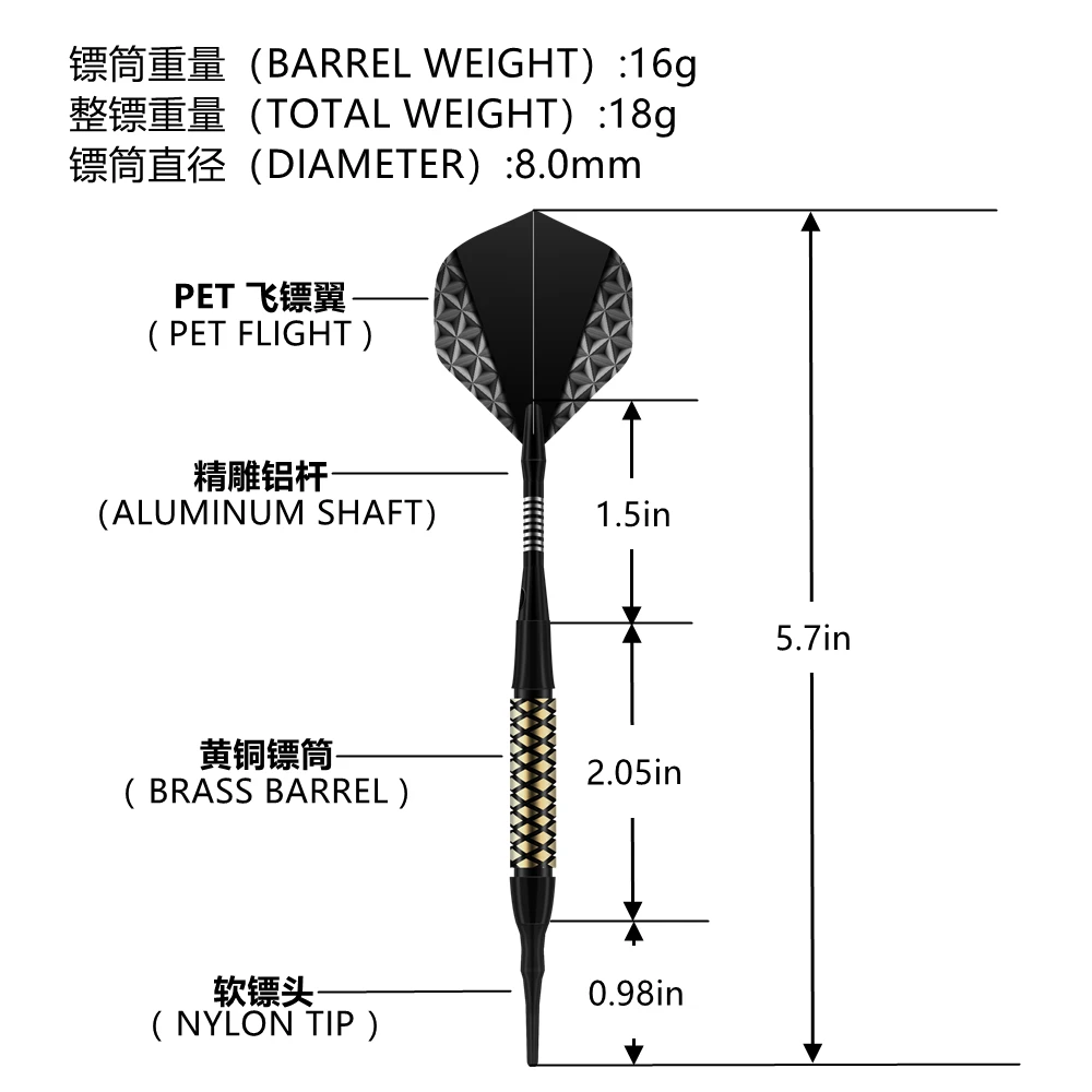 Вал Дротика изготовлен из высококачественного алюминиевого сплава и передовой технологии зеркальной резьбы и резки. Это высокое качество и ослепительный, не легко сломать и прочный.